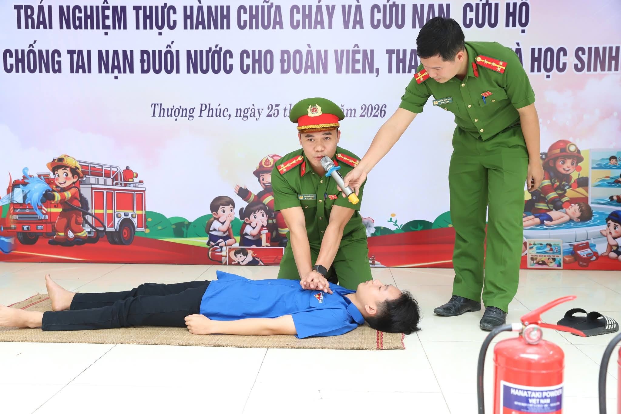 Sáng ngày 25-4, hơn 700 đoàn viên, thanh niên và học sinh trên địa bàn xã Thượng Phúc đã được nghe Trung tá Nguyễn Xuân Chiến, Phó Đội trưởng Đội Chữa cháy và Cứu nạn, cứu hộ khu vực số 32 cùng các đồng chí cán bộ trong đội truyền đạt kiến thức, hướng dẫn kỹ năng phòng cháy, chữa cháy. Đây là chương trình do Đoàn Thanh niên xã Thượng Phúc phối hợp tổ chức trong bối cảnh xã đang đẩy mạnh công tác phòng cháy, chữa cháy và xây dựng môi trường sống an toàn cho người dân trên địa bàn.
