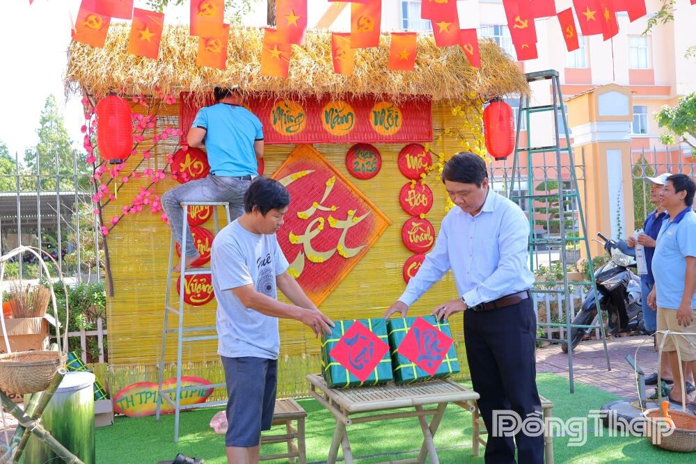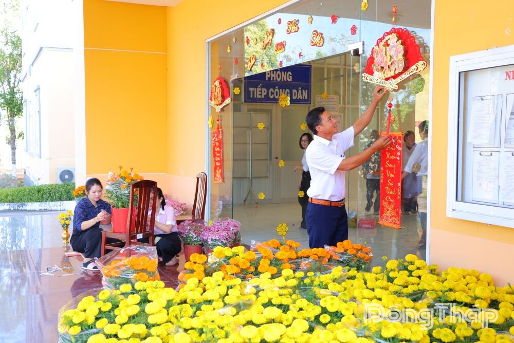 Ngoài tuyến đường Nguyễn Tất Thành, khuôn viên trụ sở Đảng ủy, UBND xã Thường Phước cũng được cán bộ, công chức trang trí lộng lẫy, tạo không khí xuân vui tươi, phấn khởi cho người dân đến liên hệ giải quyết thủ tục hành chính.