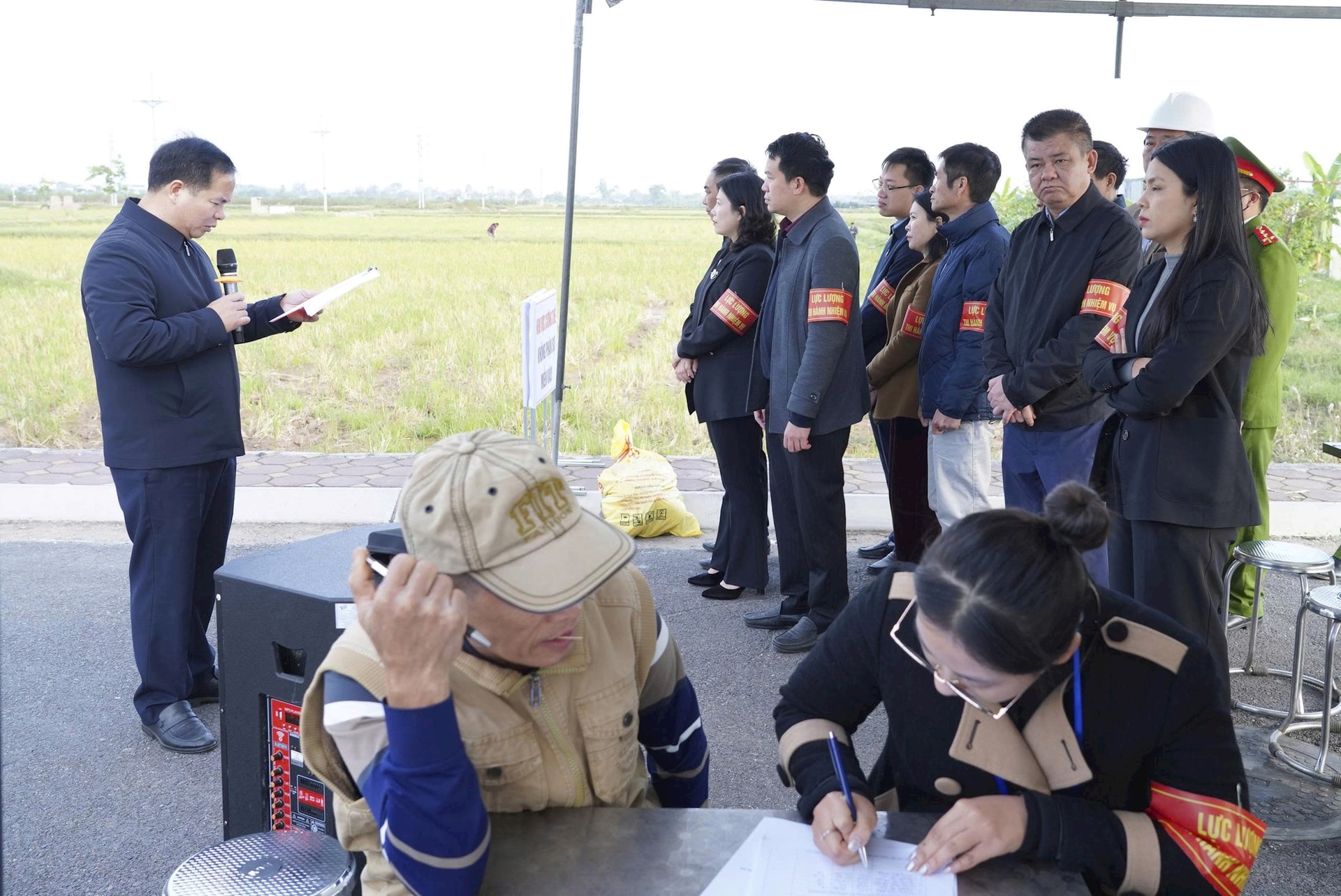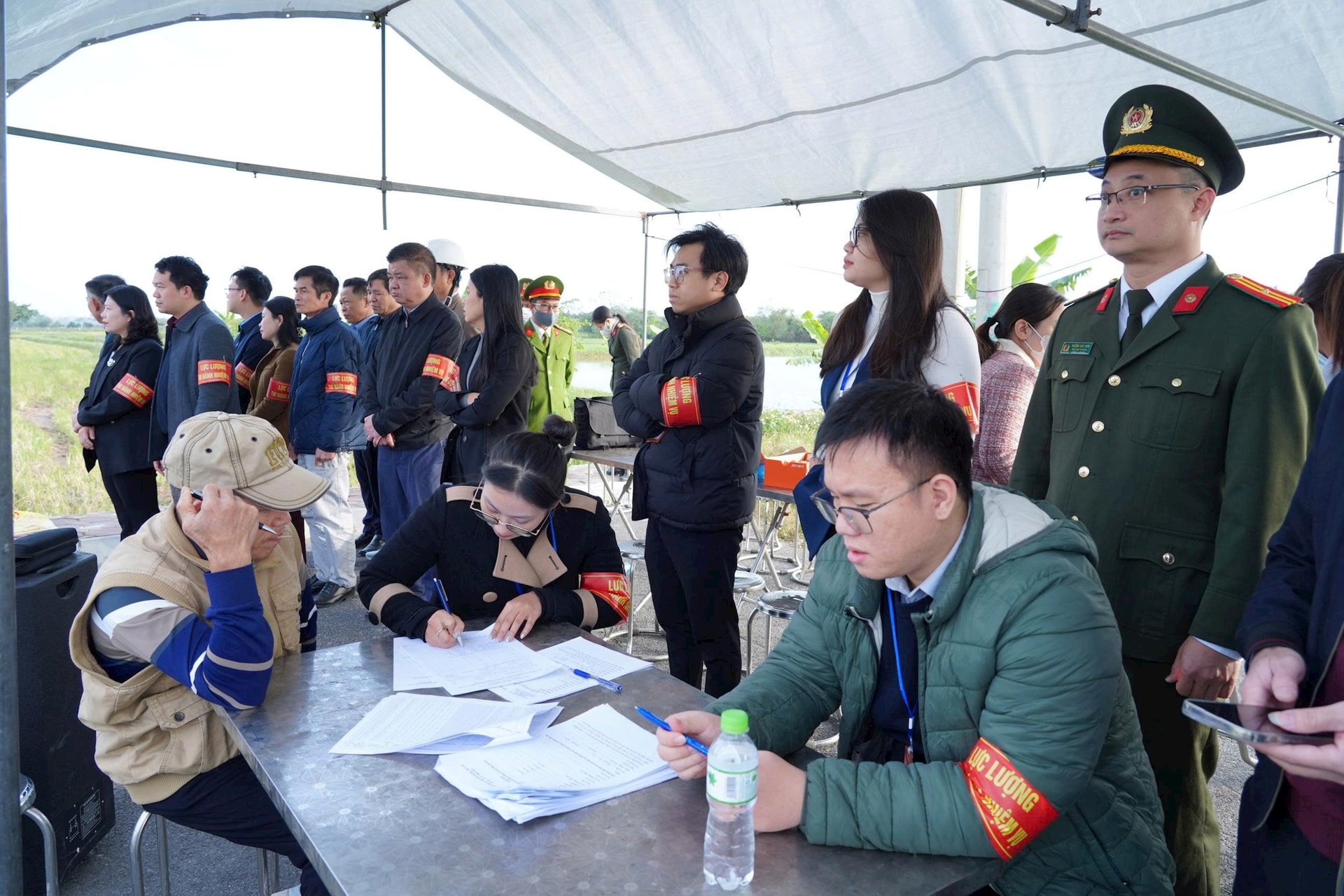 Tại buổi cưỡng chế, Phó Chủ tịch UBND xã Thường Tín Nguyễn Văn Tản công bố Quyết định cưỡng chế kiểm đếm bắt buộc đối với diện tích đất nông nghiệp của 55 hộ gia đình, cá nhân thôn Thụy Ứng.