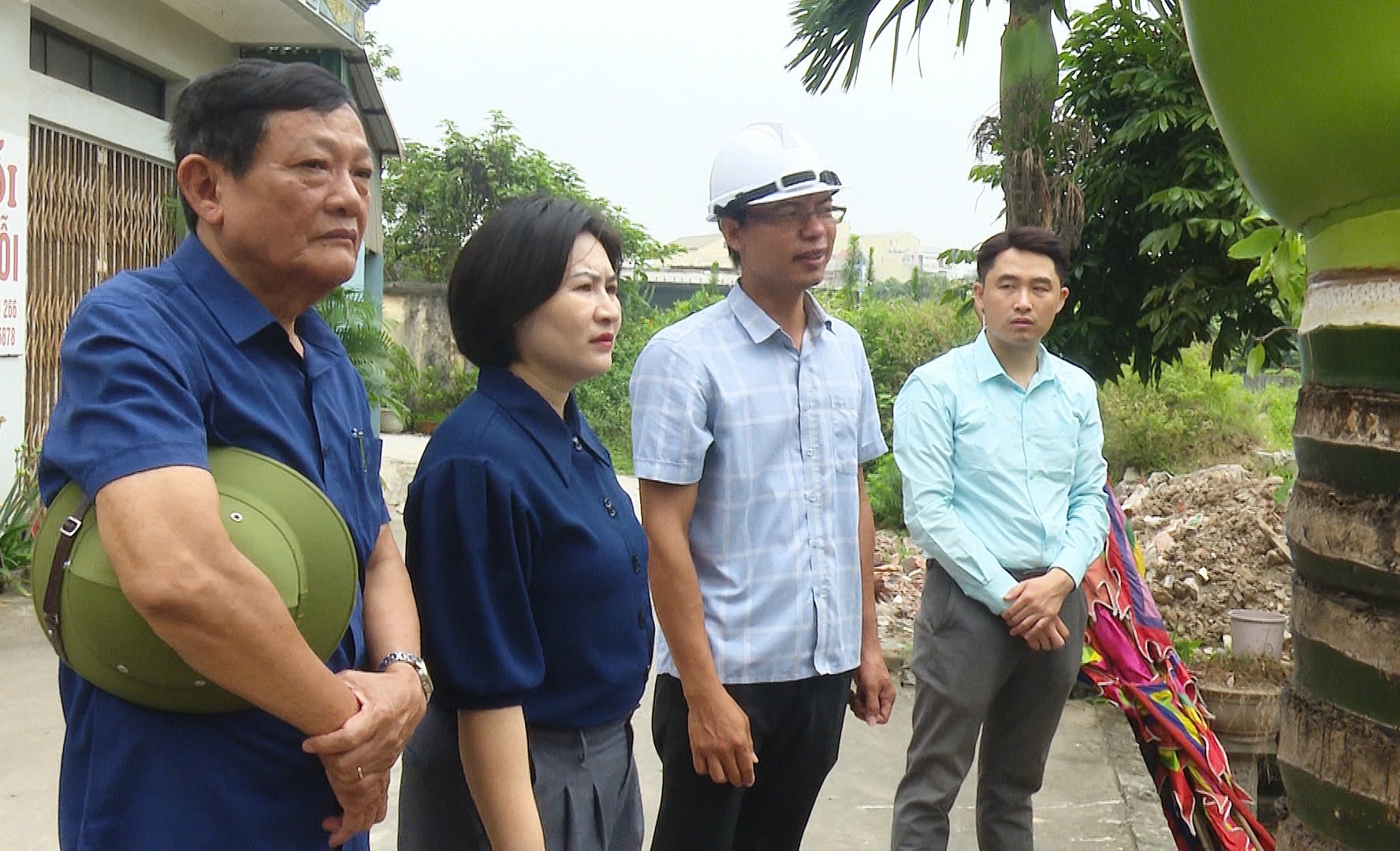 Phó Chủ tịch UBND xã Thường Tín Uông Thị Phượng trực tiếp chỉ đạo bảo vệ thi công dự án. Ảnh: PV