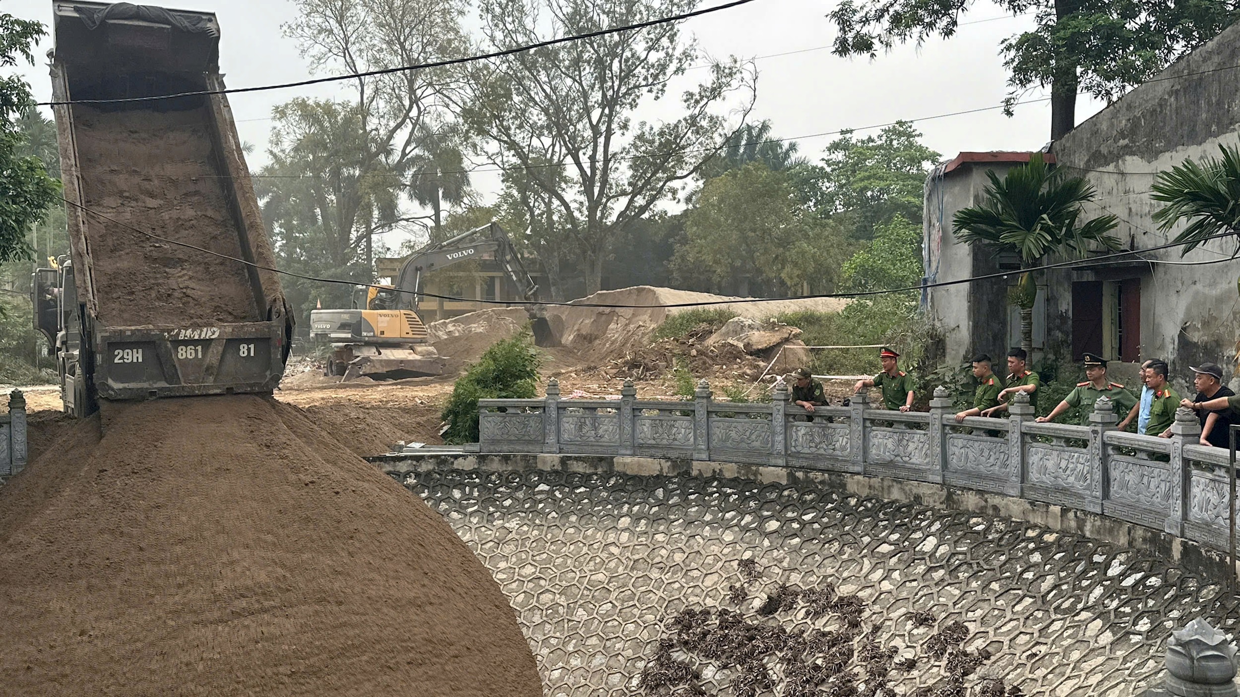 Sáng 9-4, UBND xã Thường Tín hoàn thành công tác bảo vệ thi công hạng mục cuối cùng của dự án. Ảnh: PV