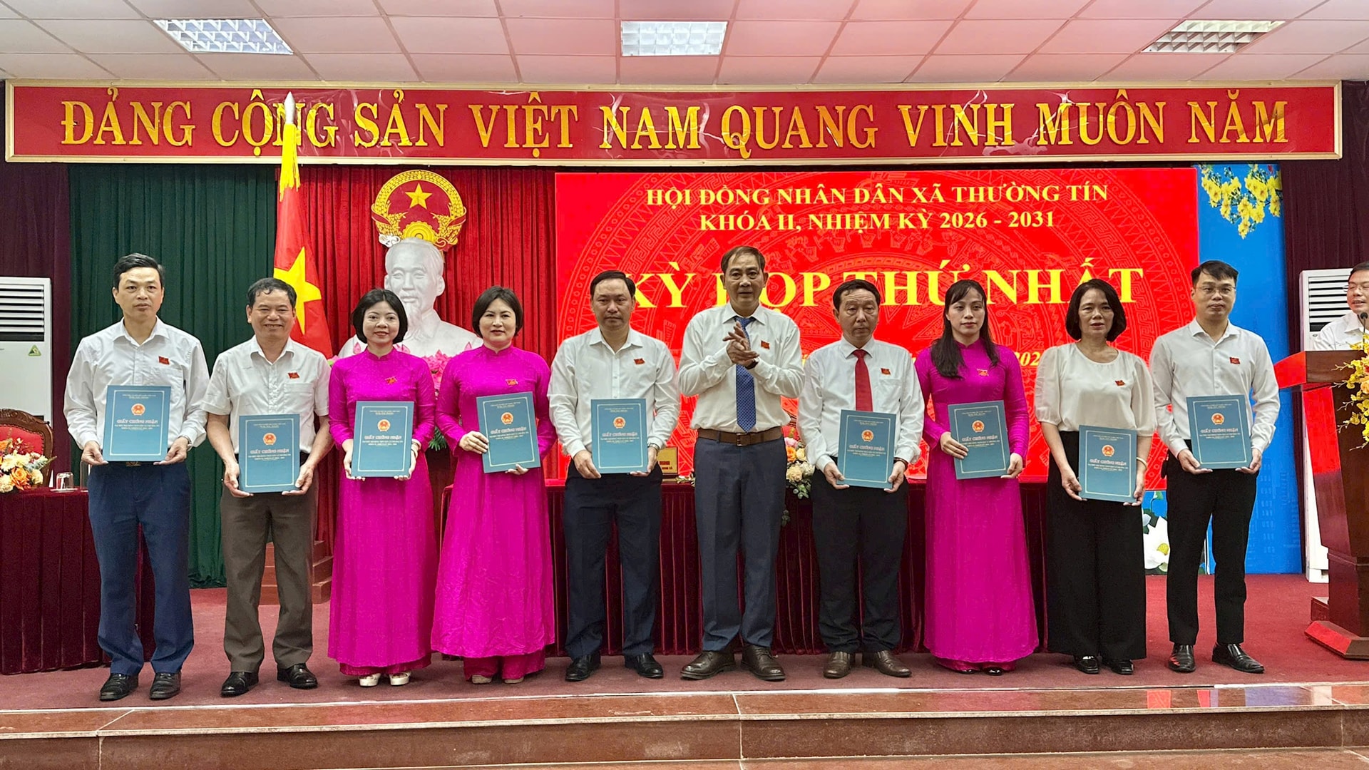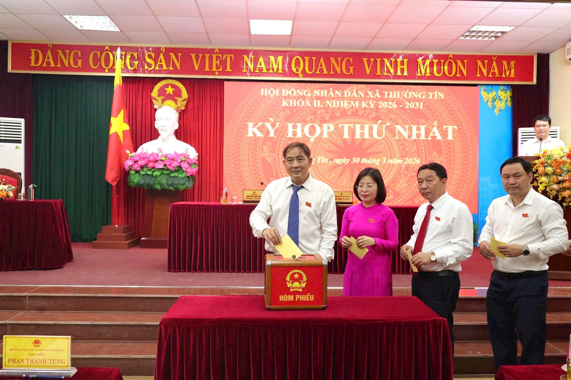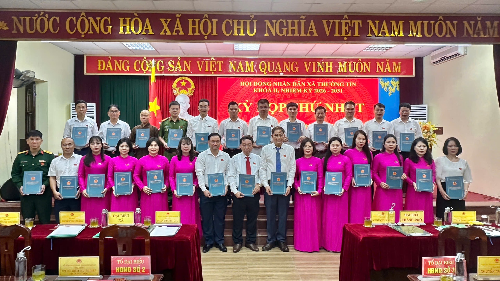 Cũng tại kỳ họp, HĐND xã Thường Tín đã tiến hành bầu các chức danh chủ chốt của xã. Đồng chí Nguyễn Xuân Minh tiếp tục được bầu giữ chức Chủ tịch HĐND xã; đồng chí Đỗ Thị Thu Hằng giữ chức Phó Chủ tịch HĐND xã; đồng chí Nguyễn Thị Thu Thủy, Trưởng ban Xây dựng Đảng được bầu giữ chức Trưởng ban Kinh tế ngân sách HĐND xã khóa II, nhiệm kỳ 2026 - 2031; đồng chí Nguyễn Thị Ngọc Bích, Trưởng Ban xây dựng Đảng được bầu giữ chức Trưởng ban Văn hóa - Xã hội HĐND xã.