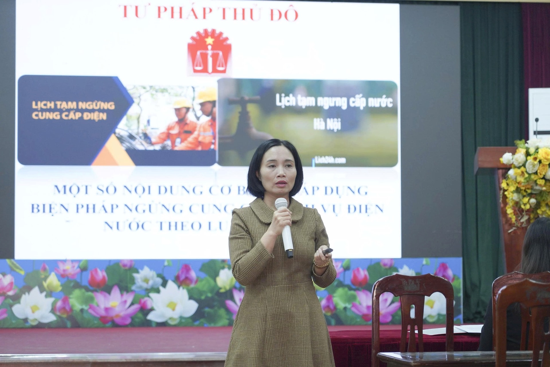 Tại hội nghị tập huấn, Phó Trưởng phòng Hành chính Tư pháp, Sở Tư pháp thành phố Hà Nội Nguyễn Thị Bích Thủy, truyền đạt nội dung trọng tâm là kỹ năng áp dụng các quy định về biện pháp yêu cầu ngừng cung cấp dịch vụ điện, nước theo Nghị quyết số 33/2024/HĐND của HĐND thành phố Hà Nội và các quy định về kiểm tra, xử lý kỷ luật trong thi hành pháp luật về xử lý vi phạm hành chính theo Nghị định số 19/2020/NĐ-CP của Chính phủ.