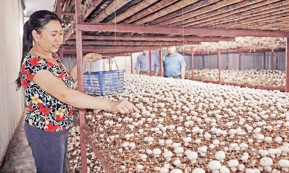 Sản xuất nấm cho thu nhập cao ở xã Tiên Lục.