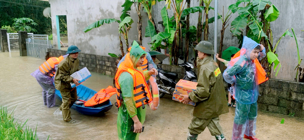 Lực lượng chức năng tiếp cận hỗ trợ lương thực cho các hộ dân bị cô lập