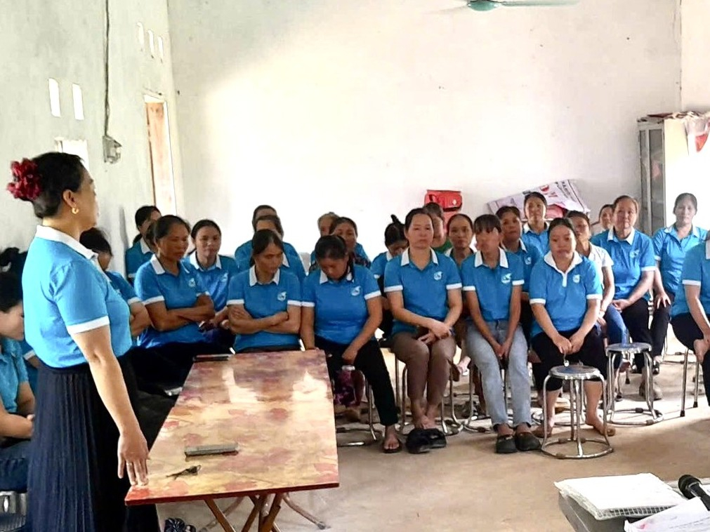 Hội Liên hiệp Phụ xã Trà Lĩnh truyên tuyền Dự án 8 về bình đẳng giới cho chị em phụ nữ xóm Cao Xuyên.