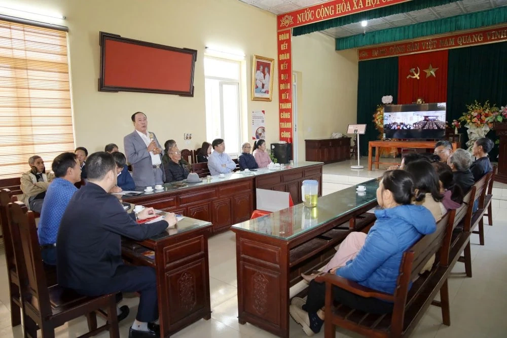 Điểm cầu trung tâm tại Đảng ủy xã Triệu Sơn kết nối đến phòng họp trực tuyến tại thôn Xuân Tiên.