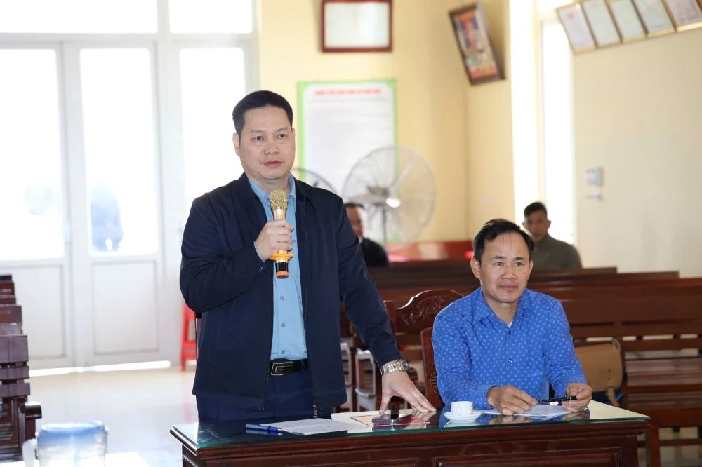 Đồng chí Phạm Nguyên Hồng, Tỉnh ủy viên, Bí thư Đảng ủy xã Triệu Sơn phát biểu tại buổi triển khai ứng dụng tại nhà văn hóa thôn Xuân Tiên.