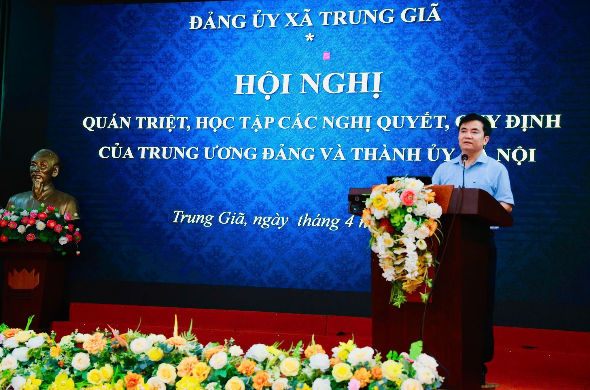 Bí thư Đảng ủy, Chủ tịch HĐND xã Trung Giã Lê Hữu Mạnh quán triệt các nội dung tại hội nghị. Ảnh: PV