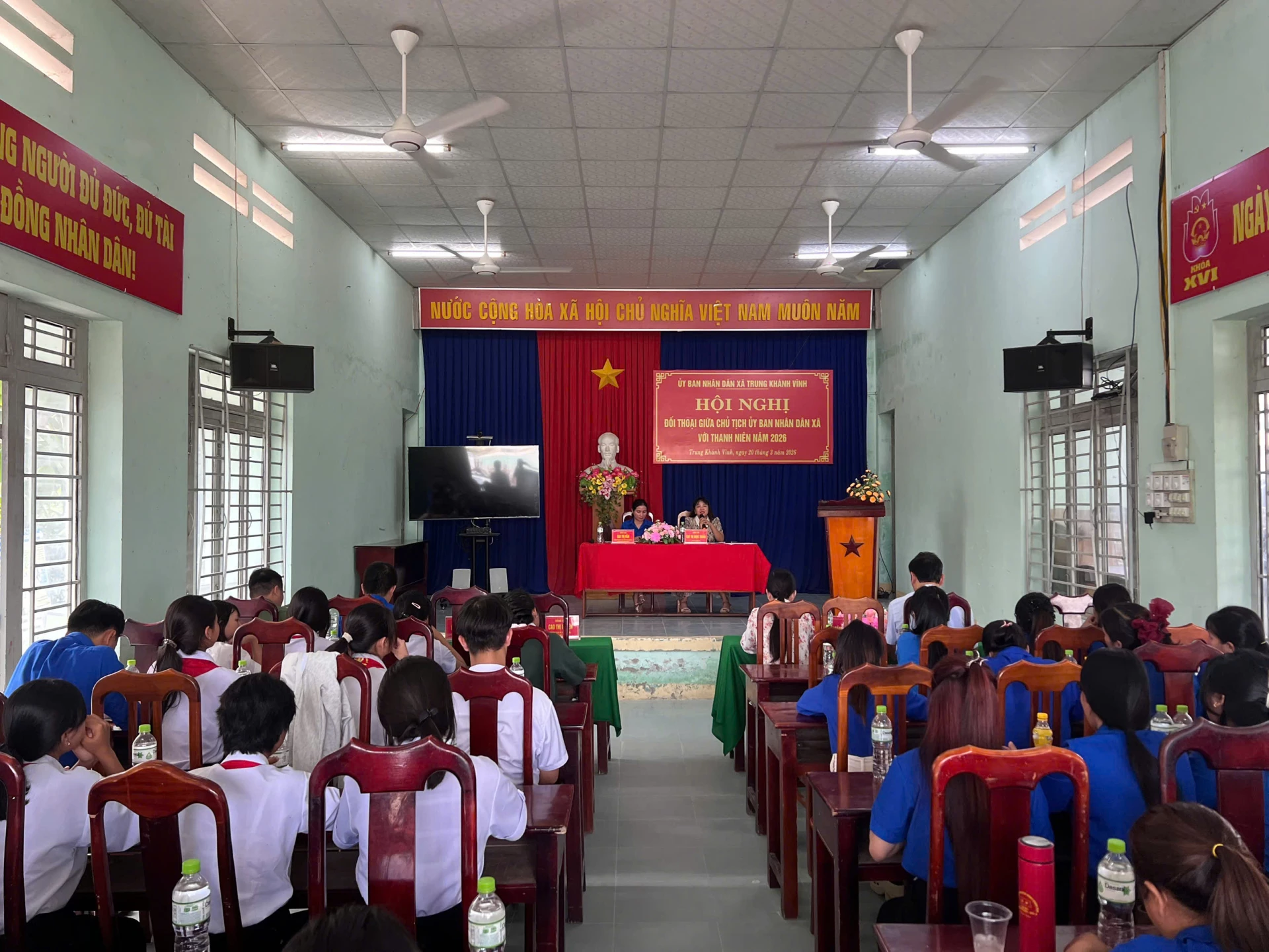 Chiều 20-3, UBND xã Trung Khánh Vĩnh tổ chức hội nghị đối thoại giữa Chủ tịch UBND xã với thanh niên trên địa bàn.