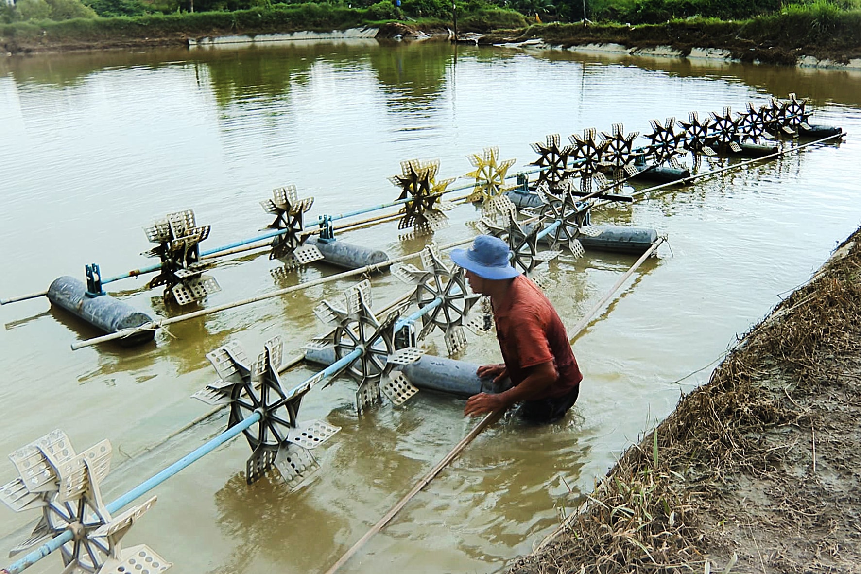 Người dân chủ động kiểm tra các đìa nuôi tôm