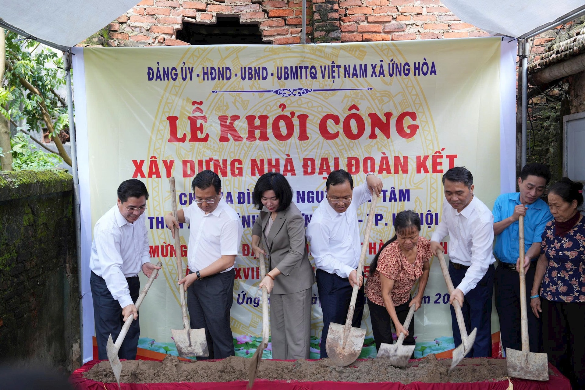 Sau khi dâng hương tại đình Hòa Chanh, thôn Hòa Chanh, lãnh đạo thành phố và xã Ứng Hòa đã dự lễ khởi công nhà Đại đoàn kết cho hộ bà Nguyễn Thị Tâm ở thôn Xuân Tình.