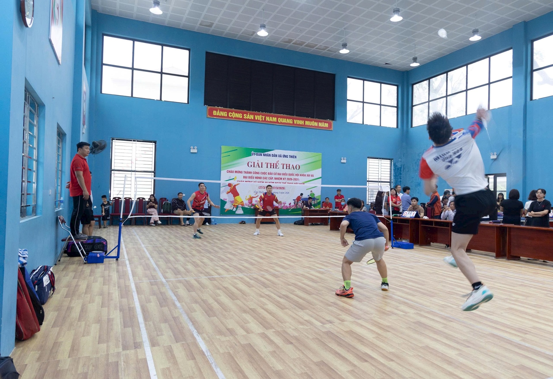 Giải Thể thao xã Ứng Thiên đã thu hút hơn 20 đơn vị tham gia, tranh tài ở 4 nội dung, gồm: Cầu lông đôi nam trên 41 tuổi, cầu lông đôi nam dưới 40 tuổi, cầu lông đôi nữ và bóng bàn.