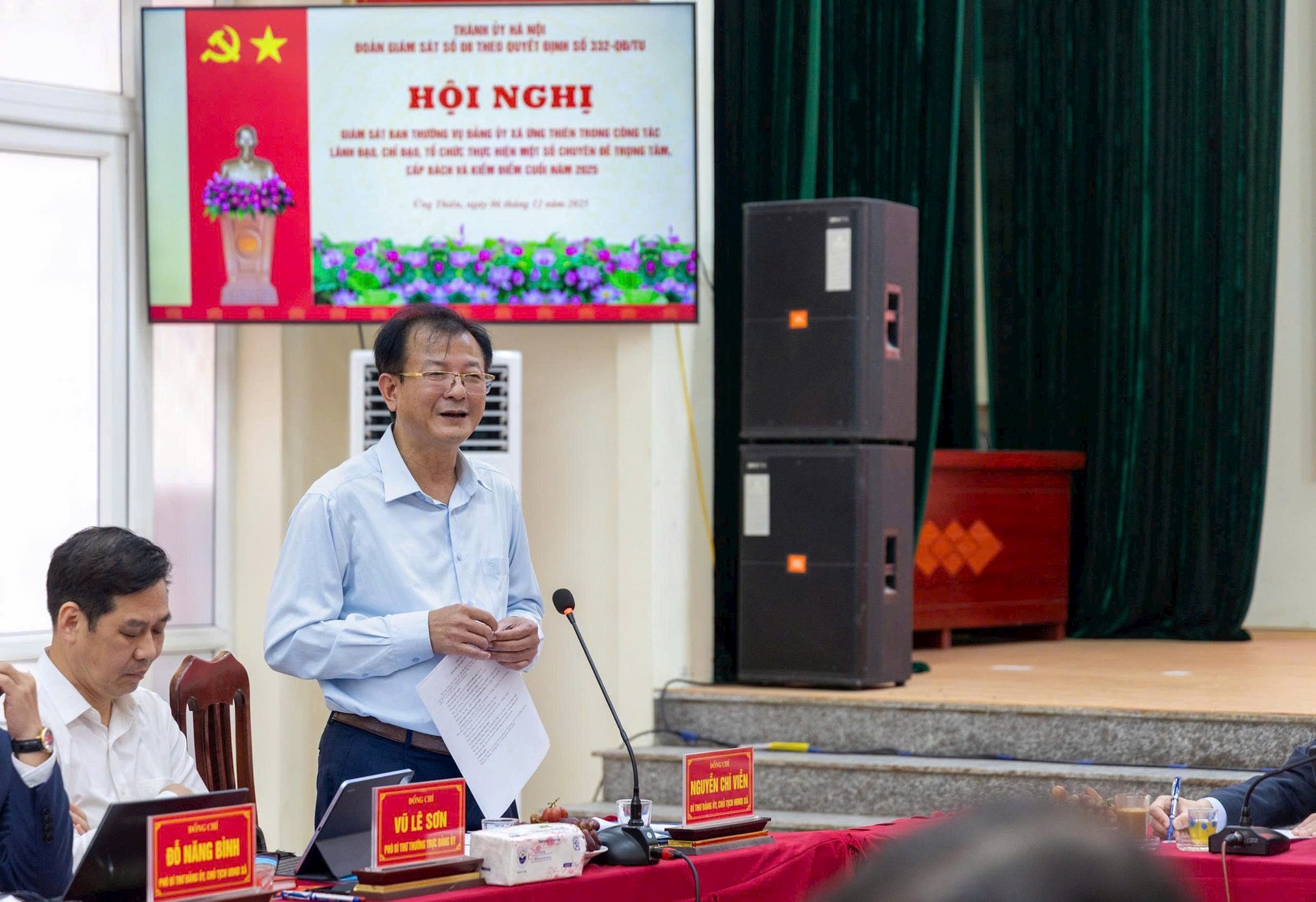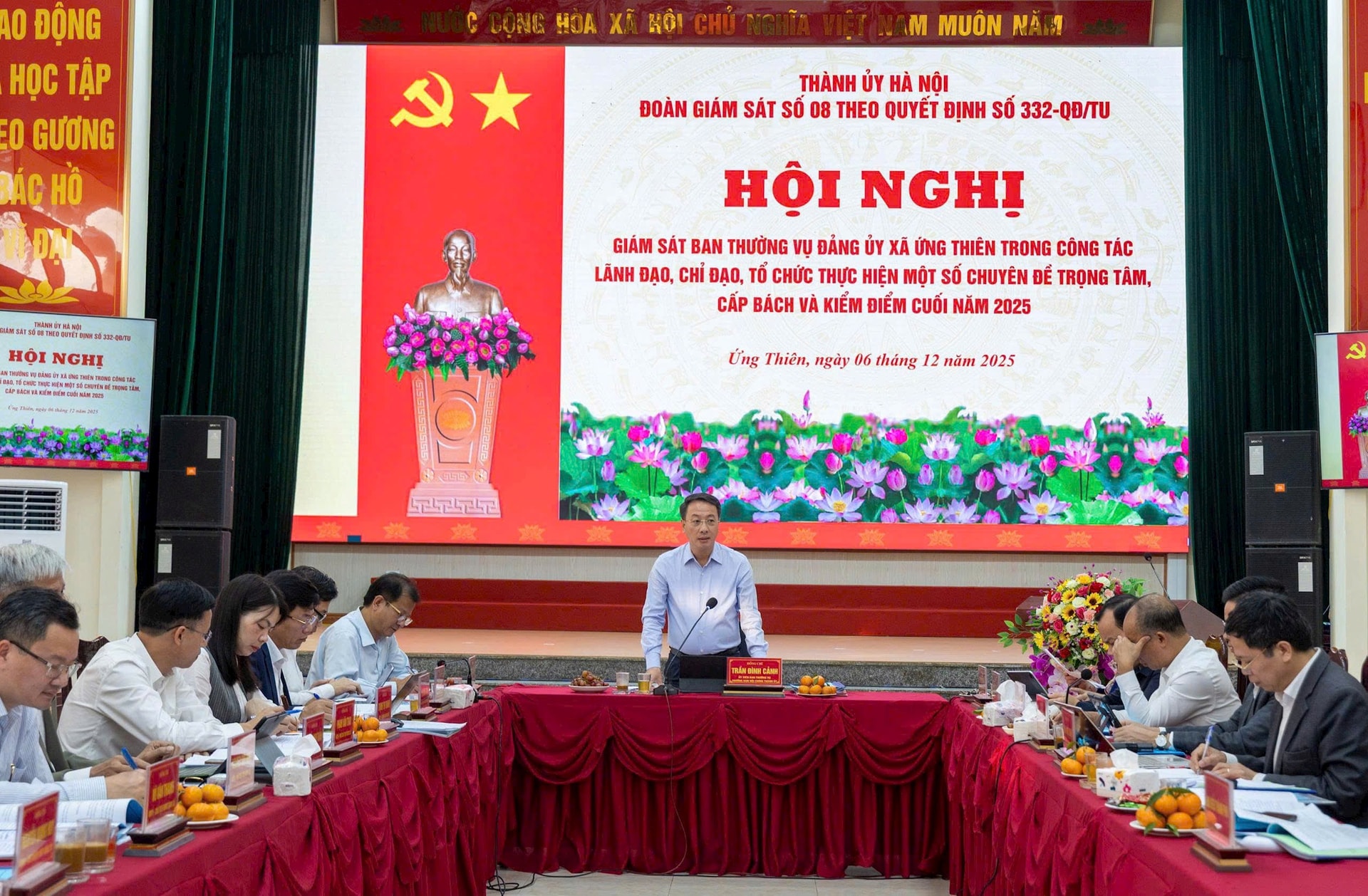 Kết luận buổi làm việc, đồng chí Trần Đình Cảnh ghi nhận nỗ lực của hệ thống chính trị xã Ứng Thiên, đồng thời đề nghị địa phương tập trung một số nhiệm vụ trọng tâm, thực hiện hiệu quả phân cấp, phân quyền gắn với chuyển đổi số; tăng tốc giải ngân đầu tư công; tháo gỡ vướng mắc trong giải phóng mặt bằng, nhất là các dự án hạ tầng thiết yếu. Đồng chí yêu cầu xã sắp xếp biên chế hợp lý, quản lý tốt tài sản công; có giải pháp cụ thể xử lý ô nhiễm tại thôn Xà Cầu; nâng cao chất lượng phục vụ người dân; quan tâm an sinh xã hội và các đối tượng chính sách.