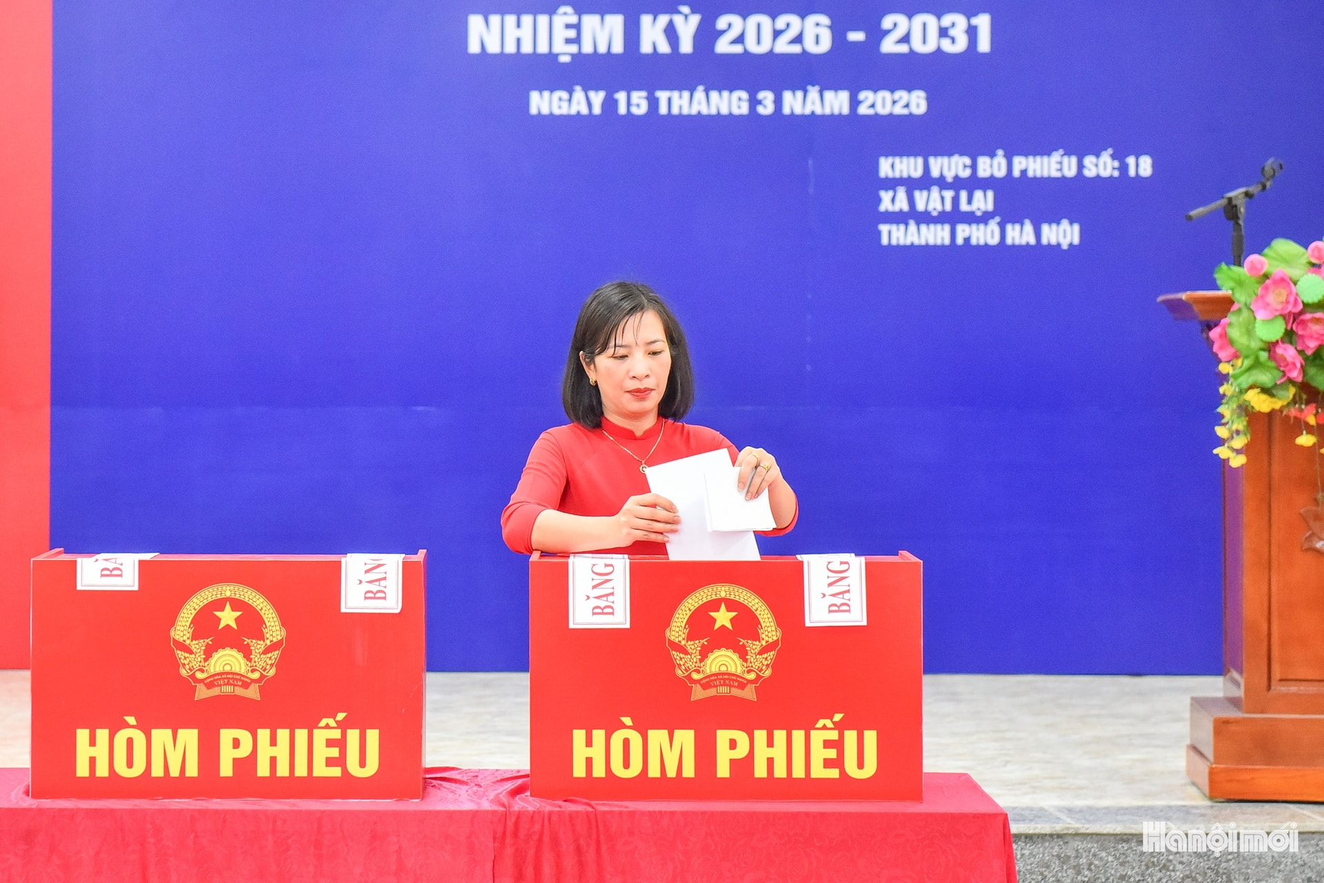 Cử tri xã Vật Lại tham gia bỏ phiếu bầu đại biểu HĐND nhiệm kỳ 2026-2031. Ảnh: Phan Anh
