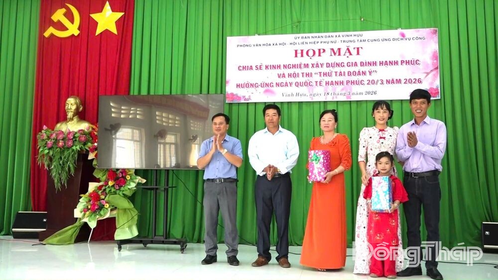 Tại buổi lễ, đại diện Phòng Văn hóa - Xã hội xã Vĩnh Hựu đã phát biểu về lịch sử, ý nghĩa Ngày Quốc tế Hạnh phúc 20-3. Chủ đề ngày Quốc tế Hạnh phúc năm 2026 là “Hạnh phúc cho mọi người”.