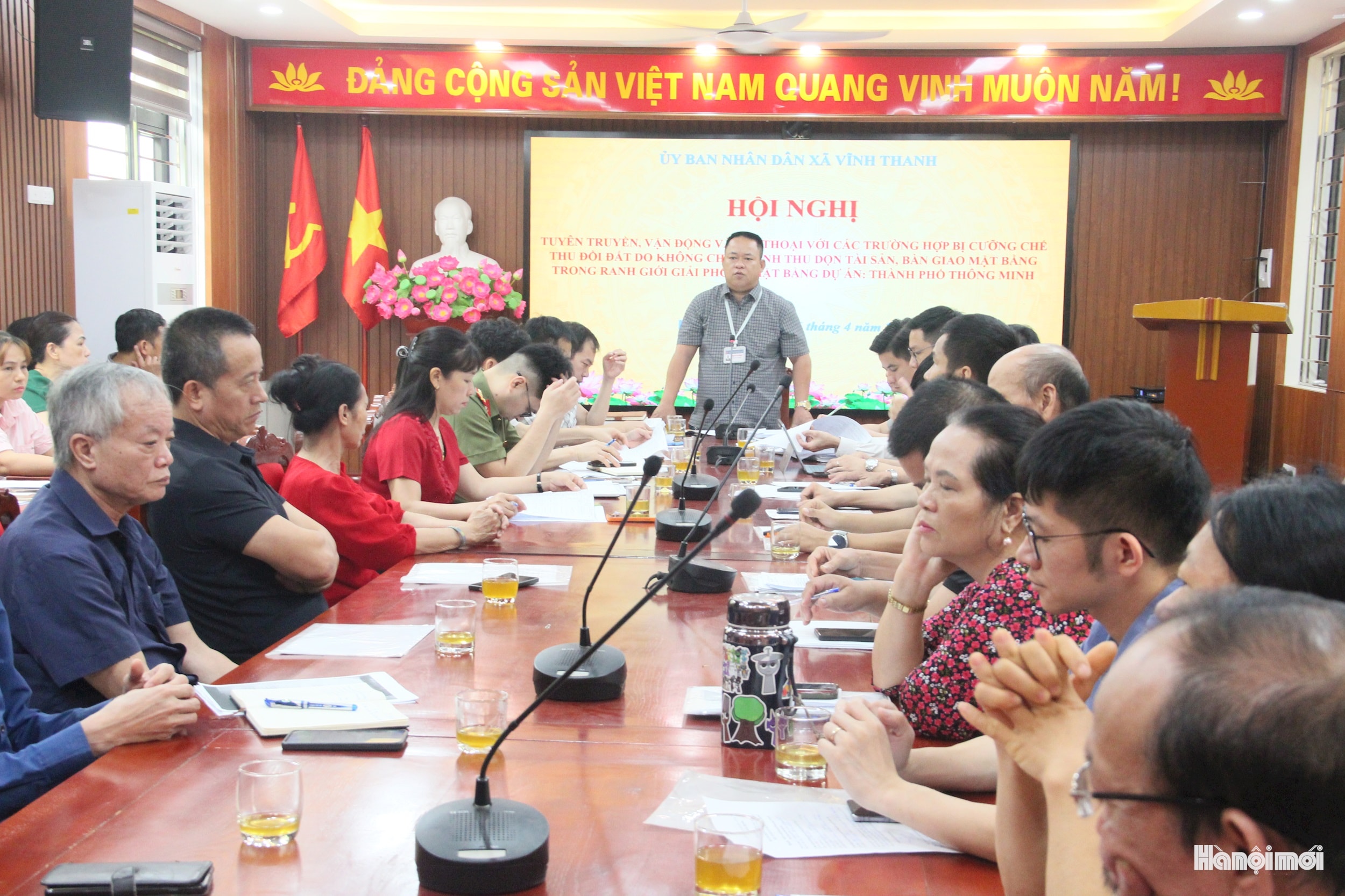 Tại hội nghị, đại diện tổ công tác cũng thông tin, quán triệt các quyết định thu hồi đất, quyết định cưỡng chế thu hồi đất và phương án bồi thường, hỗ trợ, tái định cư đã được phê duyệt đối với các hộ gia đình, cá nhân trên địa bàn thôn Hải Bối. Đồng thời, làm rõ cơ sở pháp lý, chính sách liên quan nhằm đảm bảo quyền lợi chính đáng của người dân theo quy định.