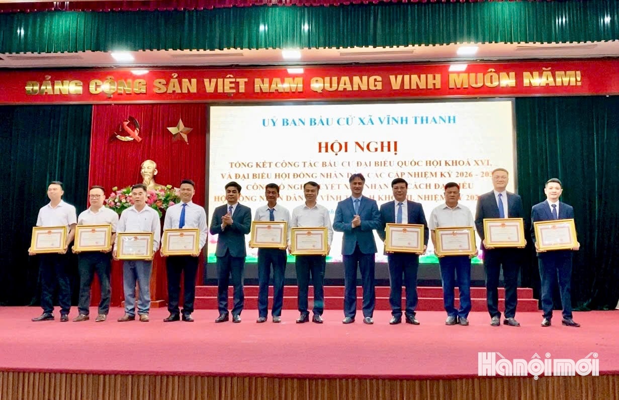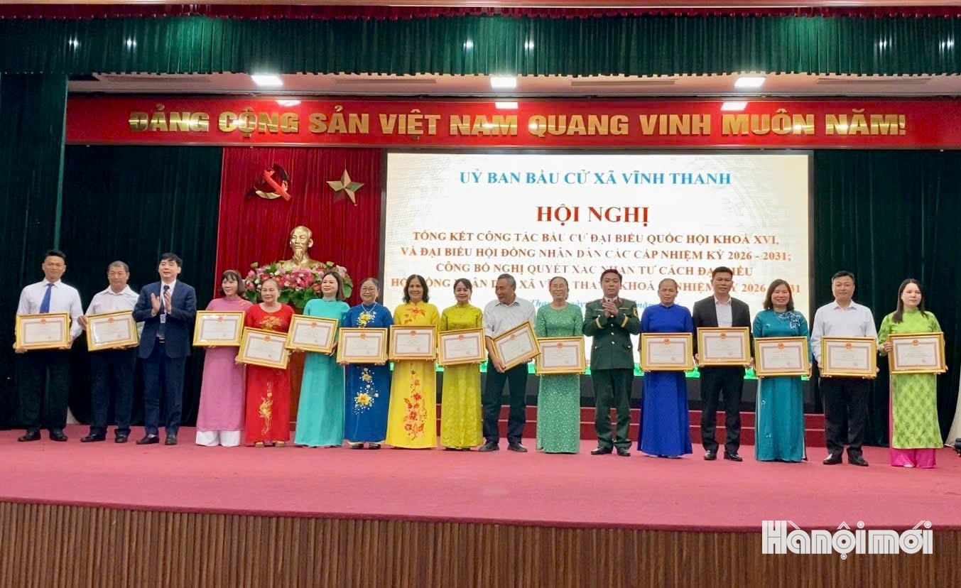 Tại hội nghị, các đại biểu đã trao quyết định, tặng hoa chúc mừng 23 đại biểu trúng cử HĐND xã khóa II, nhiệm kỳ 2026-2031. Đồng thời, xã Vĩnh Thanh đã khen thưởng 20 tập thể và 191 cá nhân có thành tích xuất sắc trong công tác bầu cử.
