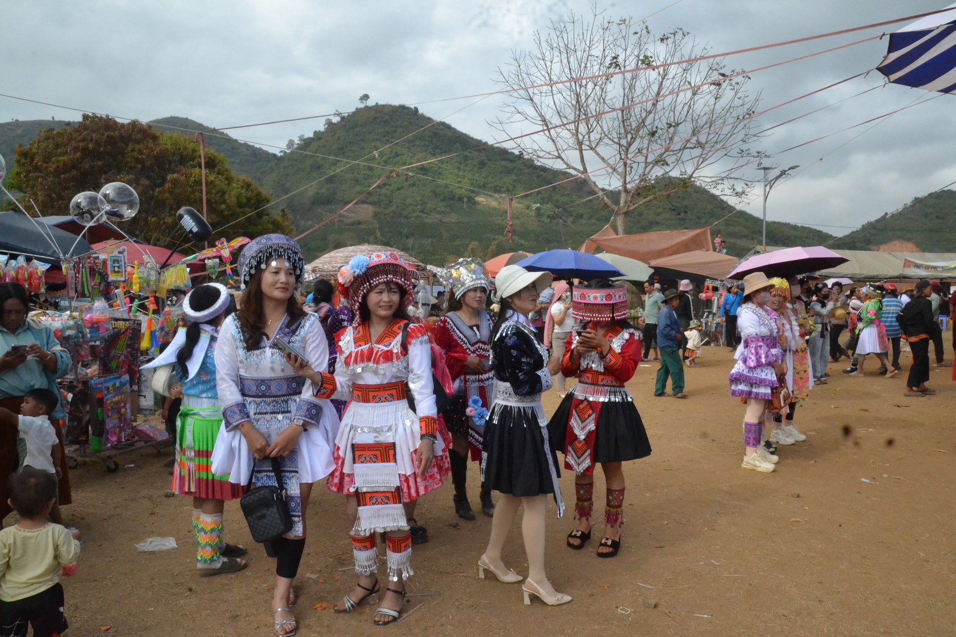 Các cô gái người Mông chọn cho mình những bộ trang phục truyền thống đẹp, ưng ý nhất đi trẩy hội