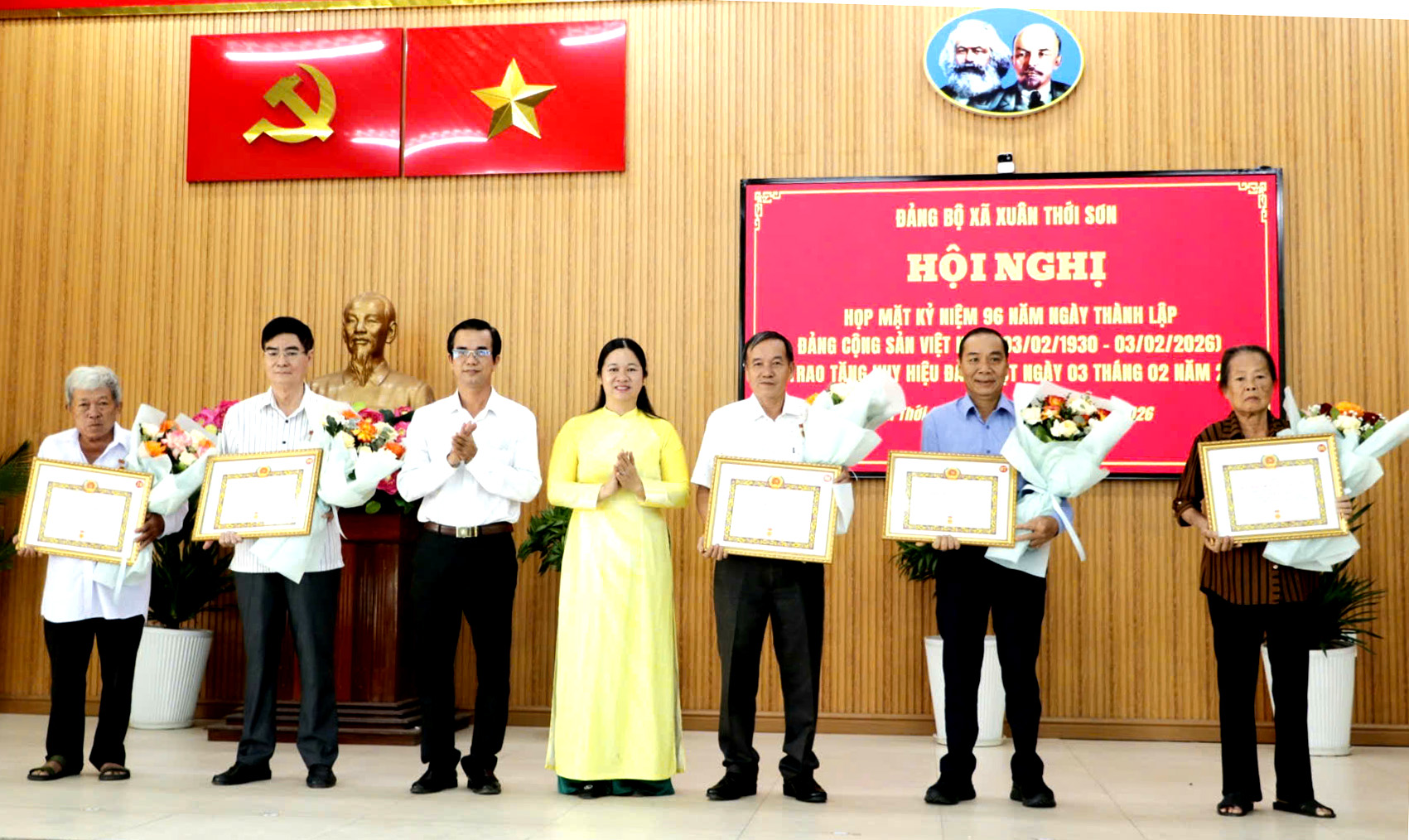 Đợt này, Đảng bộ xã Xuân Thới Sơn có 20 đảng viên được nhận Huy hiệu Đảng. Bí thư Đảng ủy xã Xuân Thới Sơn Nguyễn Trọng Ân bày tỏ trân trọng và chúc mừng các đảng viên được nhận Huy hiệu Đảng đợt này; mong đảng viên cao tuổi Đảng tiếp tục phát huy truyền thống cách mạng, tiếp tục quan tâm, đóng góp ý kiến xây dựng Đảng, dìu dắt và bồi dưỡng thế hệ trẻ.