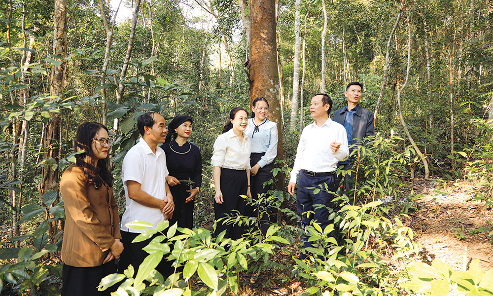 Đồng chí Nghiêm Xuân Hưởng, Tỉnh ủy viên, Phó Chủ tịch HĐND tỉnh và lãnh đạo xã Yên Định kiểm tra công tác bảo vệ và phát triển cánh rừng mẫu lớn tại thôn Đồng Chu (với tổng diện tích hơn 100 ha, chủ yếu là cây lim xanh tự nhiên).