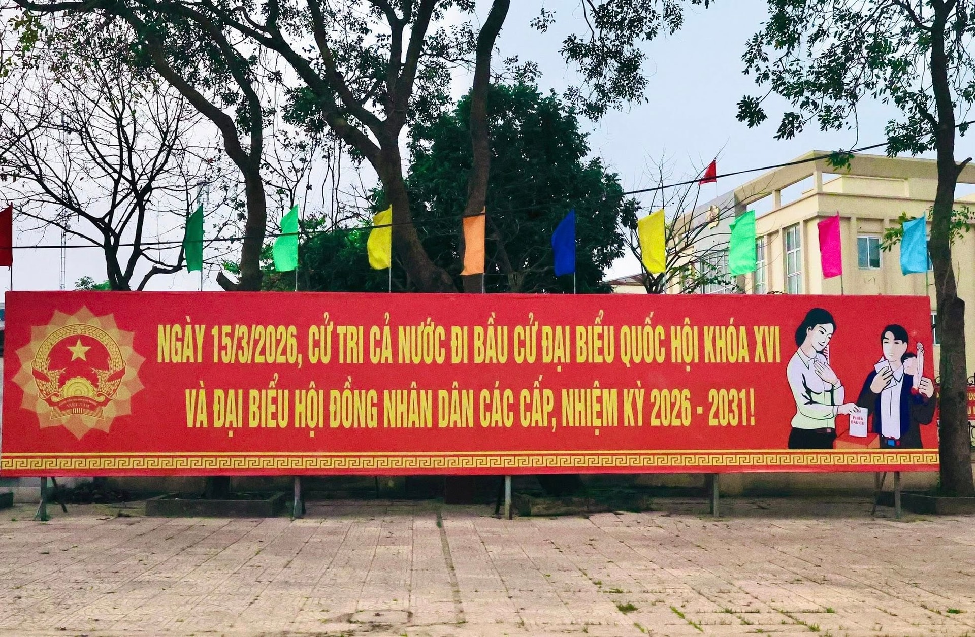 Tại các trục đường chính, nhà văn hóa thôn, khu vực bỏ phiếu, cờ Tổ quốc, băng rôn, khẩu hiệu, pano tuyên truyền được treo trang trọng, tạo không khí tươi vui, phấn khởi. Công tác tuyên truyền được đẩy mạnh với nhiều hình thức phong phú như: Tuyên truyền trên hệ thống loa truyền thanh, mạng xã hội, các buổi sinh hoạt chi bộ, chi đoàn, góp phần nâng cao nhận thức, trách nhiệm của cán bộ, đảng viên và nhân dân về ý nghĩa, tầm quan trọng của cuộc bầu cử.