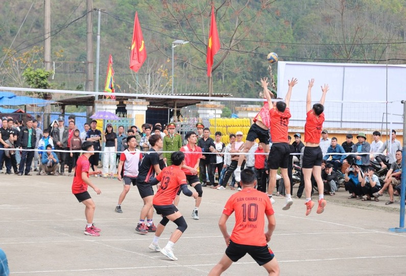 Các đội bóng chuyền da nam thi đấu tại Ngày hội văn hóa các dân tộc xã Yên Thổ.