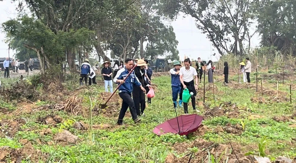 Ngay sau lễ phát động, các đồng chí lãnh đạo cùng đông đảo cán bộ công chức, viên chức, đoàn Thanh niên và Nhân dân của 21 thôn trong xã đã trồng hơn 1.000 cây hoa ban trắng tại Đền thờ Thái Sư Á Vương Đào Cam Mộc và các địa điểm trên địa bàn xã.