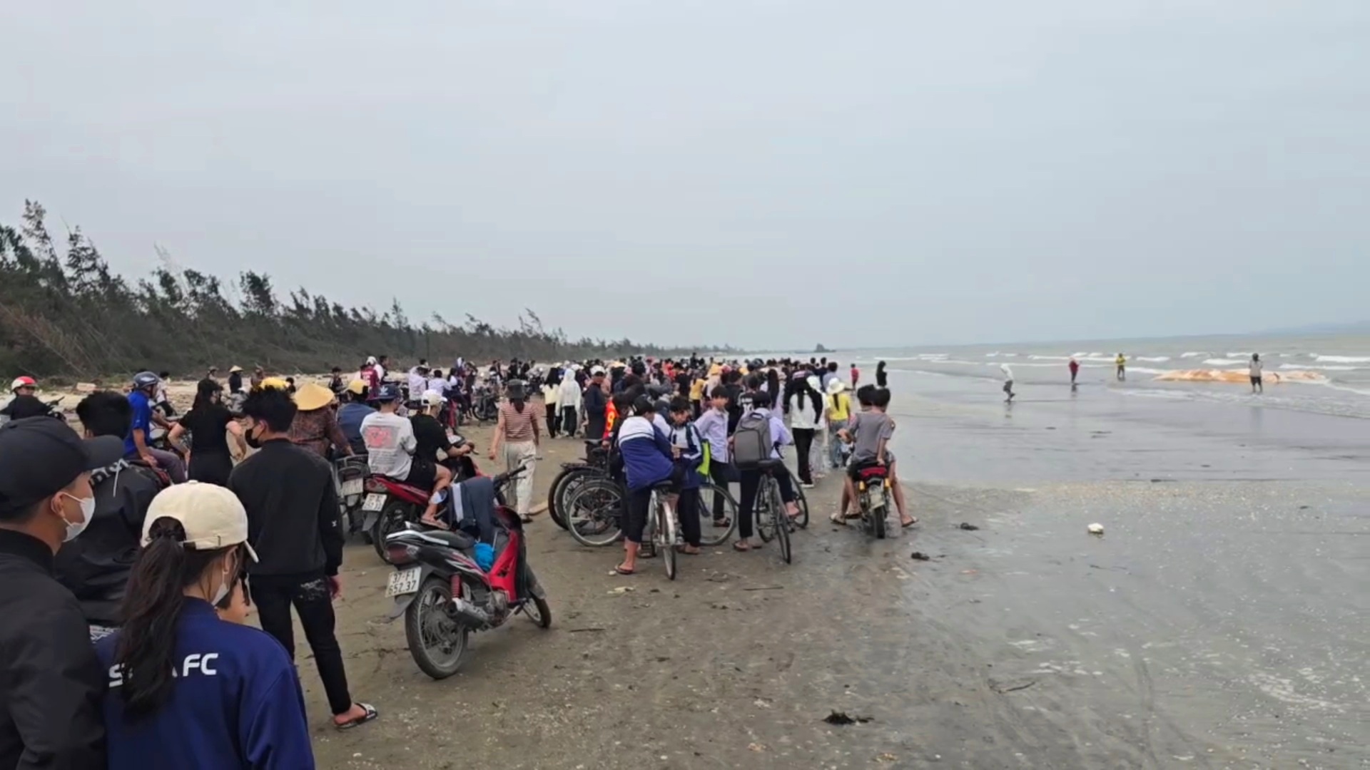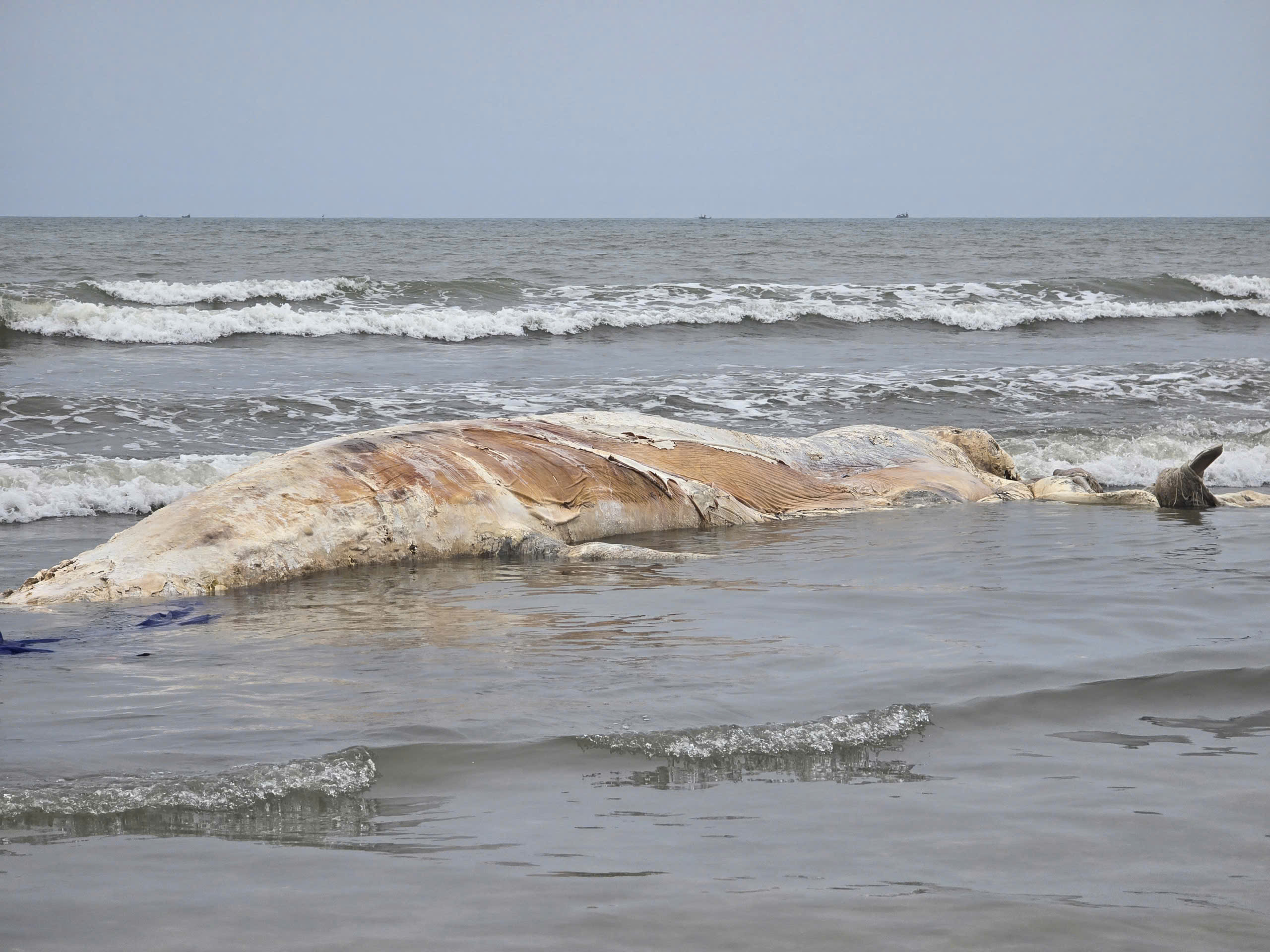 Video phát hiện xác cá voi phân hủy trôi dạt vào bờ biển xã Hải Châu