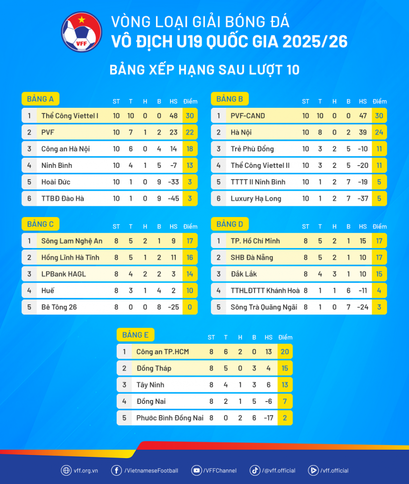 Bảng xếp hạng chung cuộc của vòng loại U19 Quốc gia 2025/2026