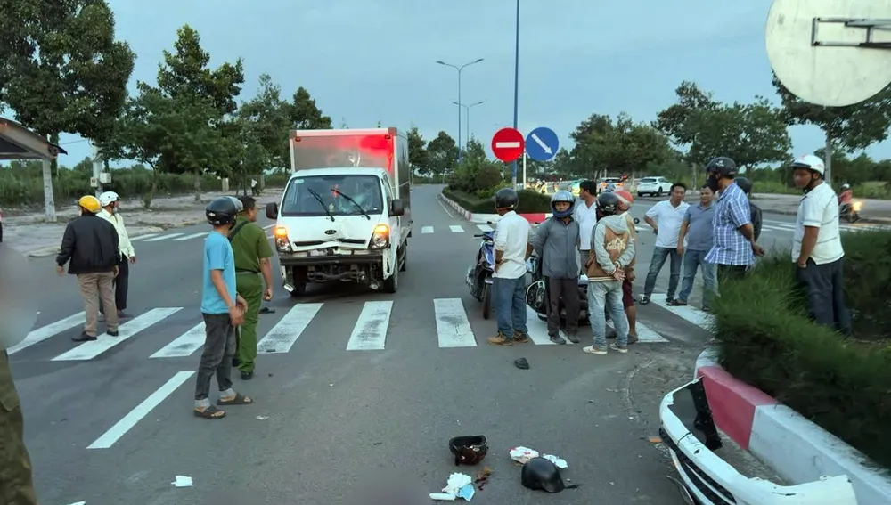 Trước đó, chiều 14-11, trên đường Võ Nguyên Giáp xảy ra vụ tai nạn giao thông giữa xe tải 86C-183.55 lưu thông hướng Mũi Né – Phú Thủy và một xe máy làm hai người đàn ông trên xe văng xuống đường bất tỉnh.