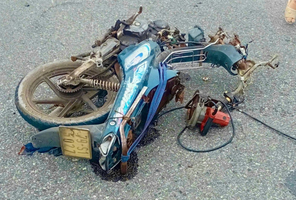 Chiếc xe máy của người dân cũng gãy nát phần đầu.