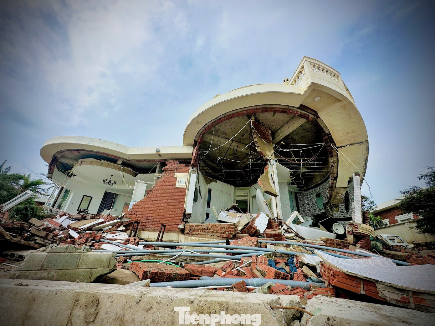 Loạt villa đổ gục do bão số 10.