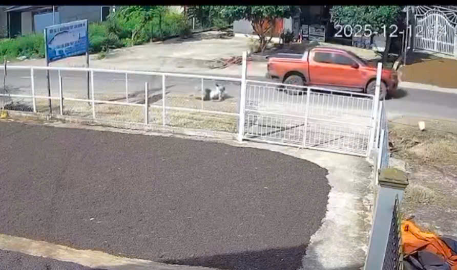 Vụ va chạm giữa ô tô bán tải và người đi bộ được camera nhà dân ghi lại. Ảnh: Chụp màn hình