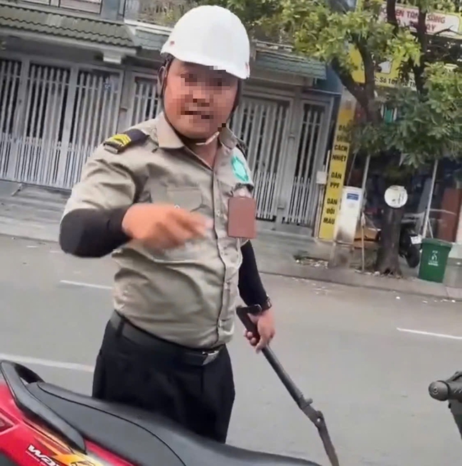 Ngày 11-2, mạng xã hội chia sẻ clip ghi lại cảnh người đàn ông mặc đồ bảo vệ cầm hung khí chặn đầu ô tô, đe dọa tài xế.