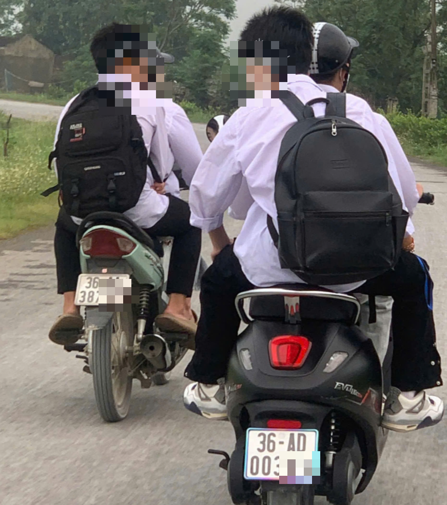 Trước đó, theo phản ánh của quần chúng nhân dân, vào hồi 6h38 ngày 20/4 trên đoạn đường Kênh Nam, xã Thiệu Hóa, tỉnh Thanh Hóa có 4 học sinh đi trên 2 phương tiện (1 xe máy điện và 1 xe gắn máy) tham gia giao thông chở người ngồi phía sau không đội mũ bảo hiểm.
