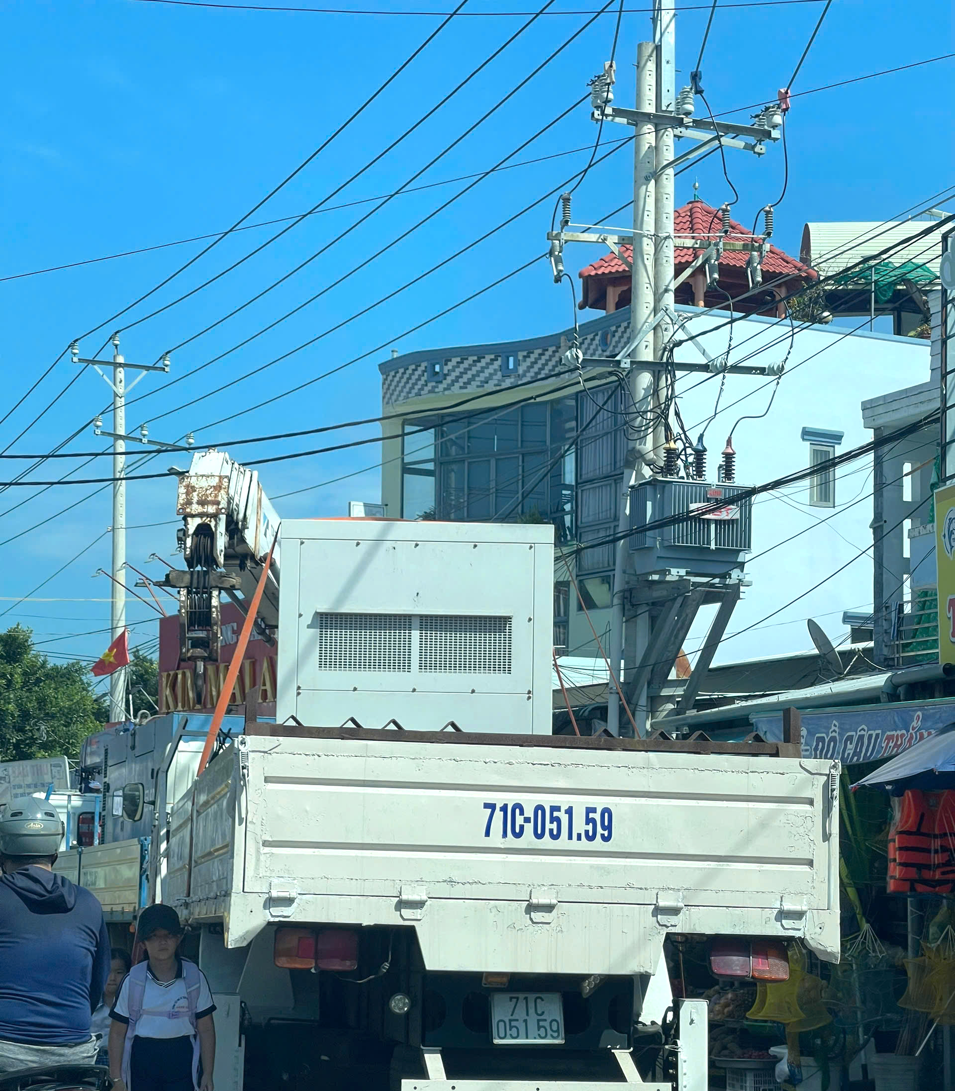 Máy phát điện công suất lớn được sử dụng để cấp điện sinh hoạt cho người dân tại các khu vực bị mất điện ở Phú Quốc