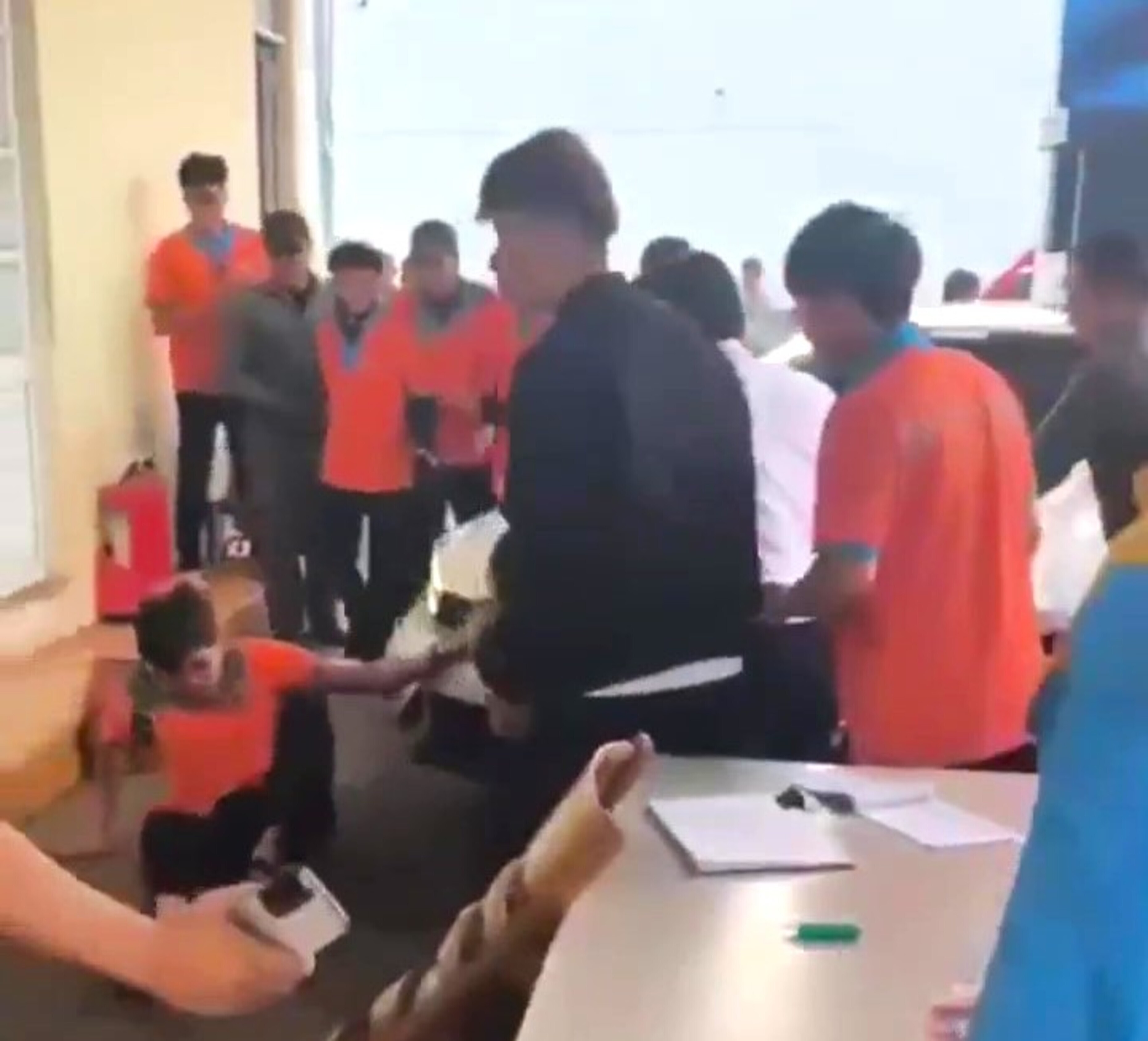 Clip khác ghi lại cảnh một thanh niên liên tục la hét, chỉ tay về phía một người khác. Nhiều người xung quanh can ngăn và giữ người này lại.