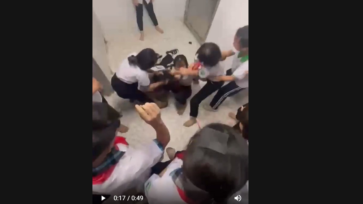 Theo tài khoản đăng tải video, sự việc xảy ra tại khu vực nhà vệ sinh của Trường THCS An Điền (phường Long Nguyên, TP.HCM).