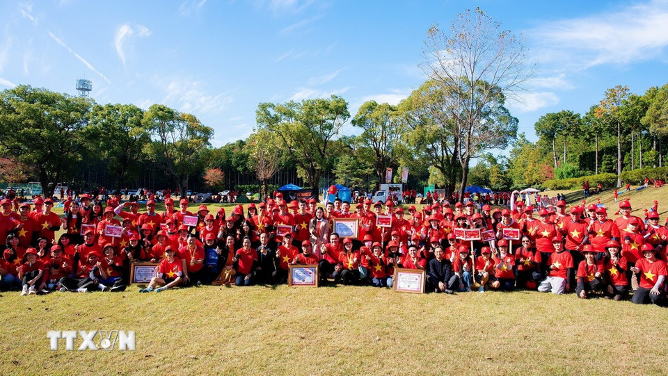 Những kiều bào đang sinh sống, học tập và làm việc tại Kyushu - Okinawa tập hợp tại Fukuoka để tham gia sự kiện. (Ảnh: Xuân Giao/TTXVN)