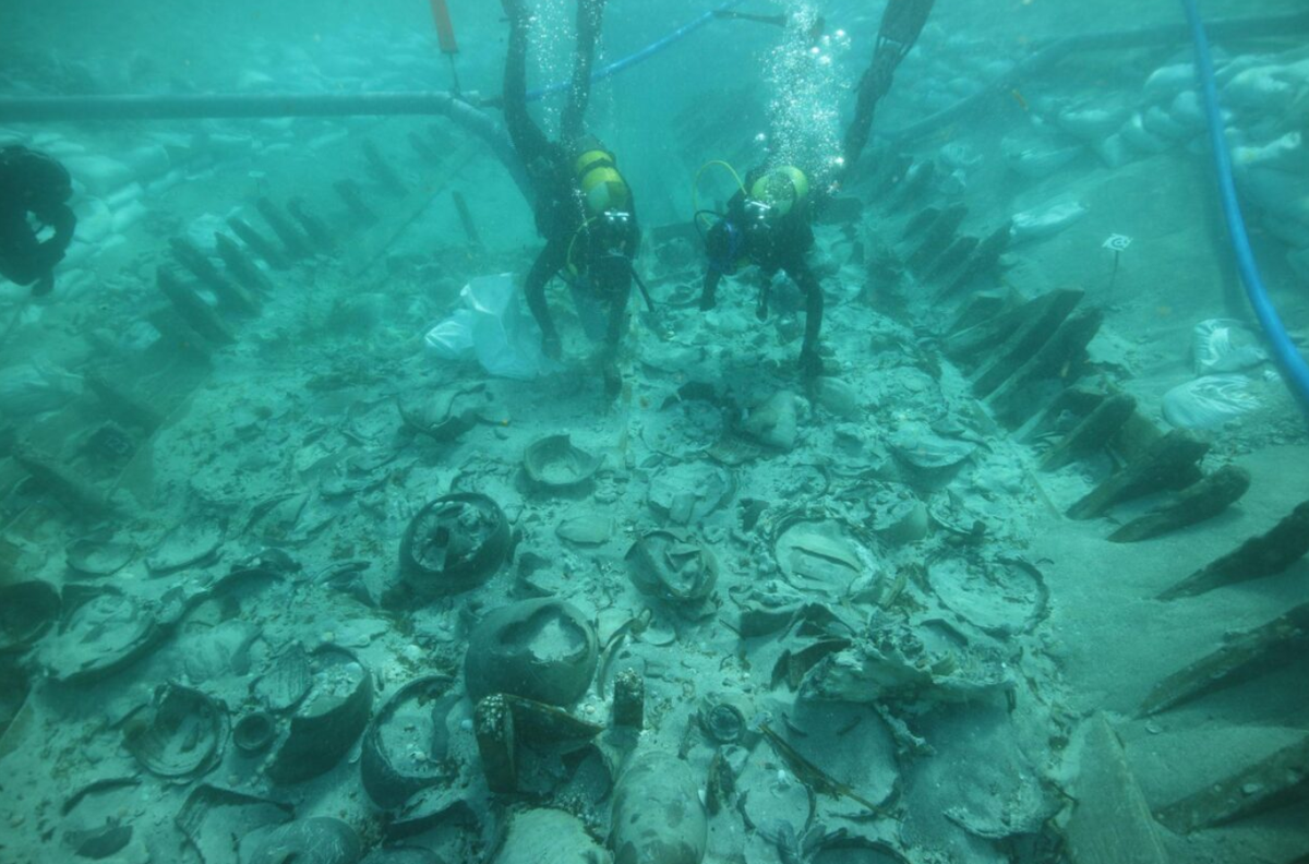 Các chuyên gia khảo cổ xác nhận rằng, con tàu này dài 12 mét, chứa hàng trăm chiếc bình vò hai quai, có niên đại khoảng giữa thế kỷ thứ 4 Sau Công Nguyên. Ảnh: @Đại học Quần đảo Balearic.