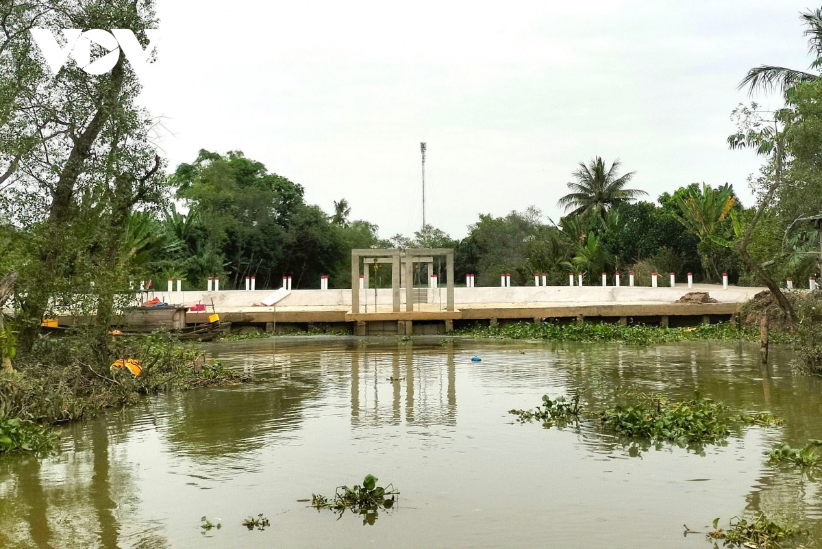 Hệ thống cống ven sông của tỉnh Vĩnh Long đóng kín để ngăn mặn, trữ nước ngọt