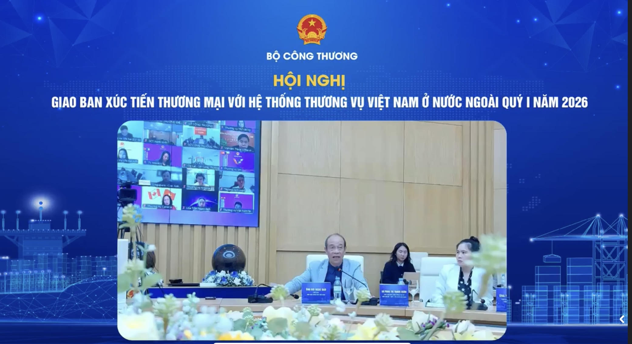 Ngày 12-3, Bộ Công thương tổ chức họp giao ban xúc tiến thương mại với hệ thống Thương vụ Việt Nam ở nước ngoài quý I-2026.