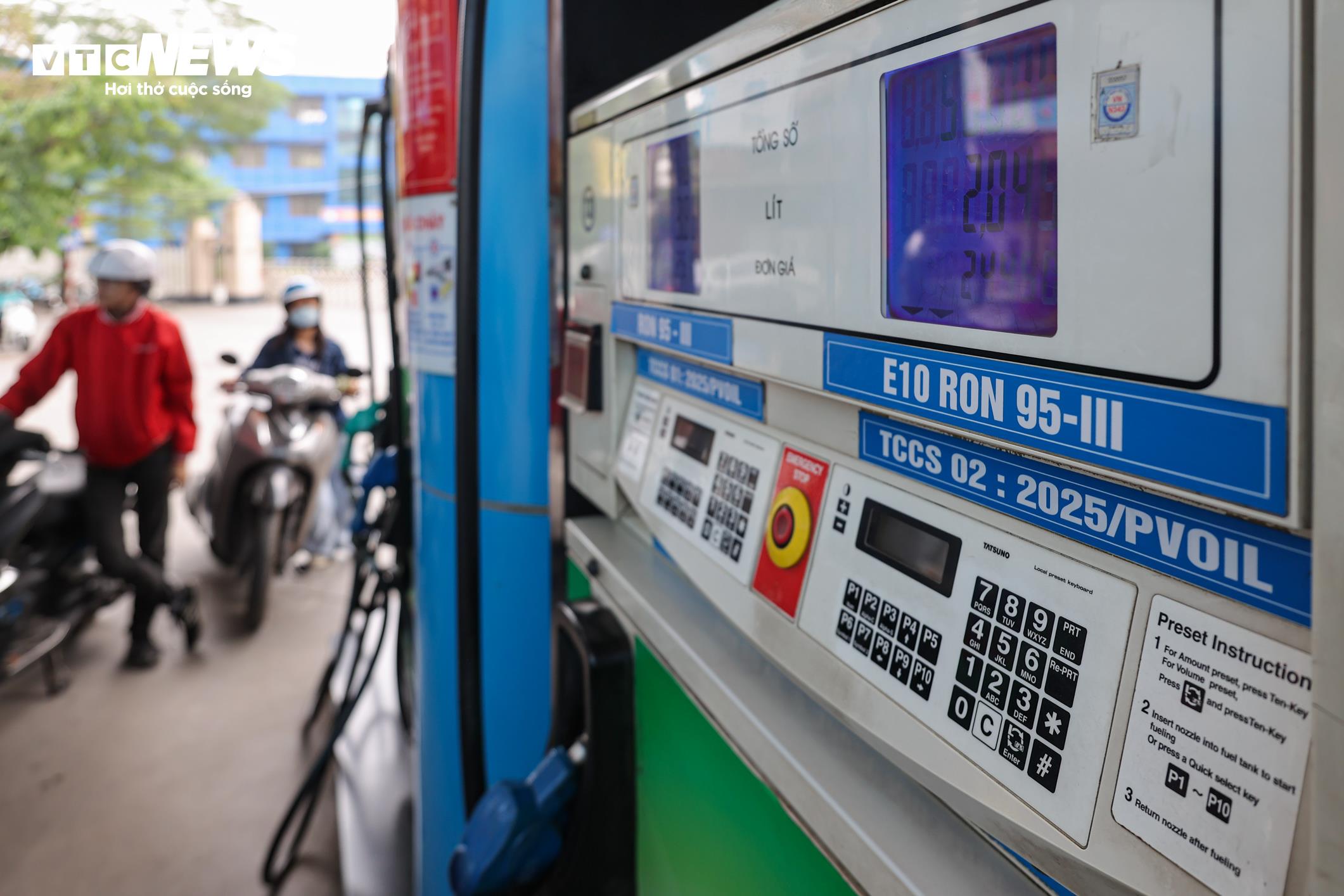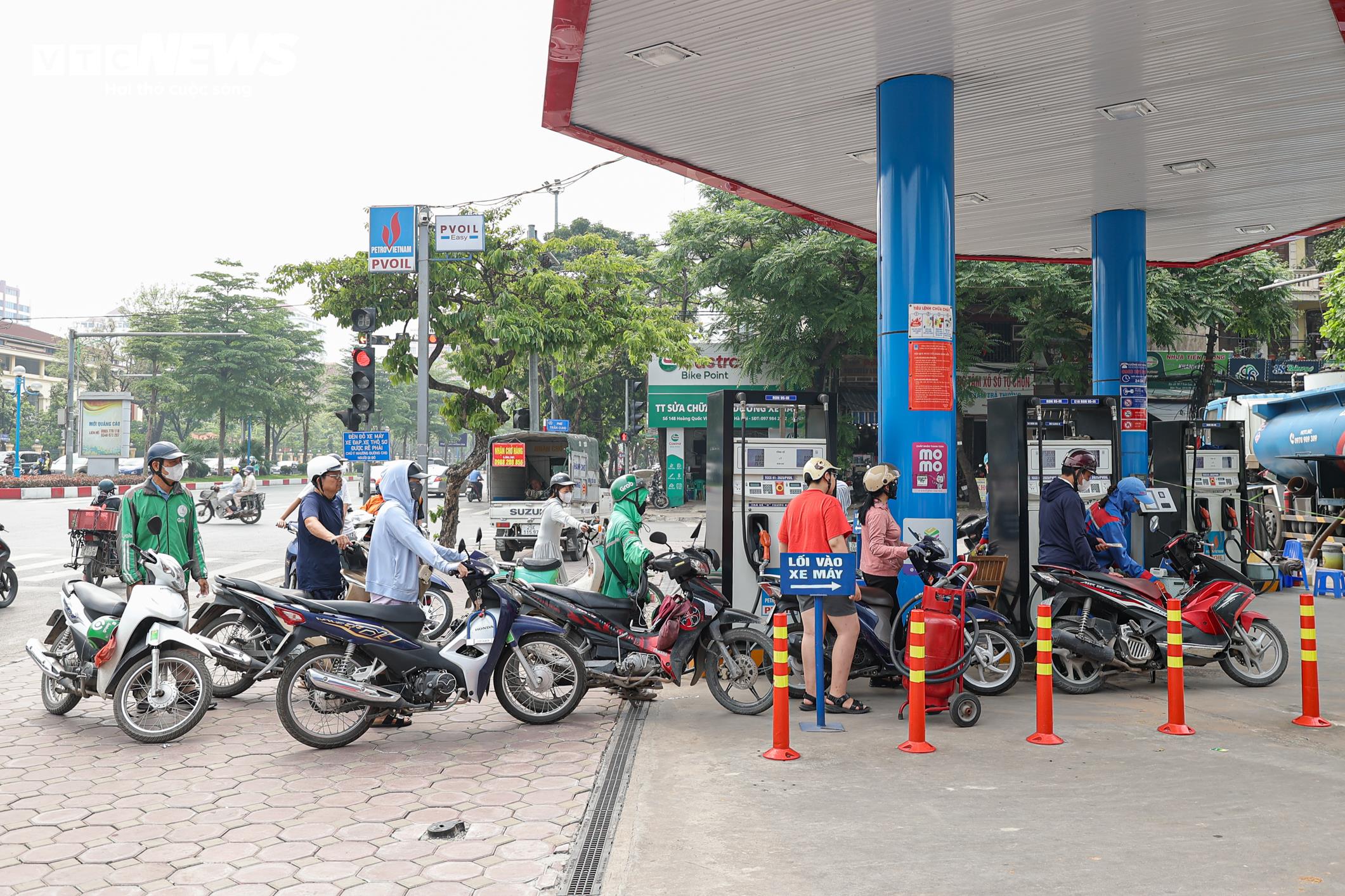 Tại cửa hàng xăng dầu PVOIL Nghĩa Tân trên đường Hoàng Quốc Việt (phường Nghĩa Đô), lượng khách đổ xăng E10 cũng khá đông, từ xe máy đến ô tô.