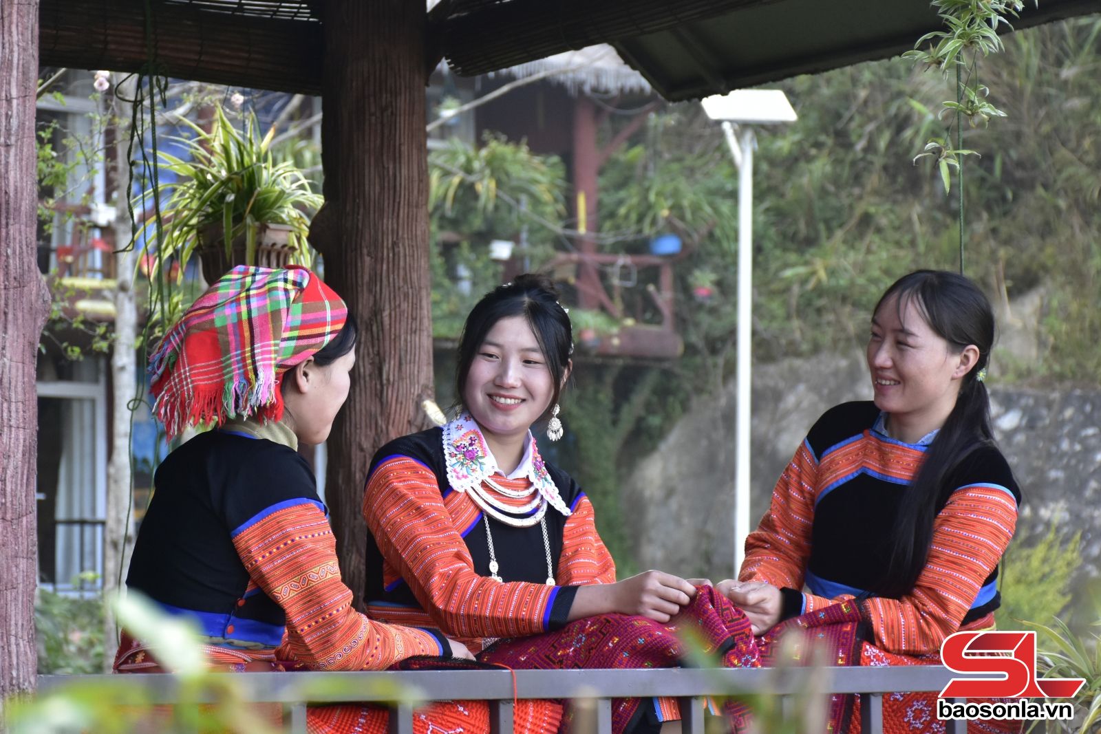 Thiếu nữ Mông thêu áo mùa xuân.