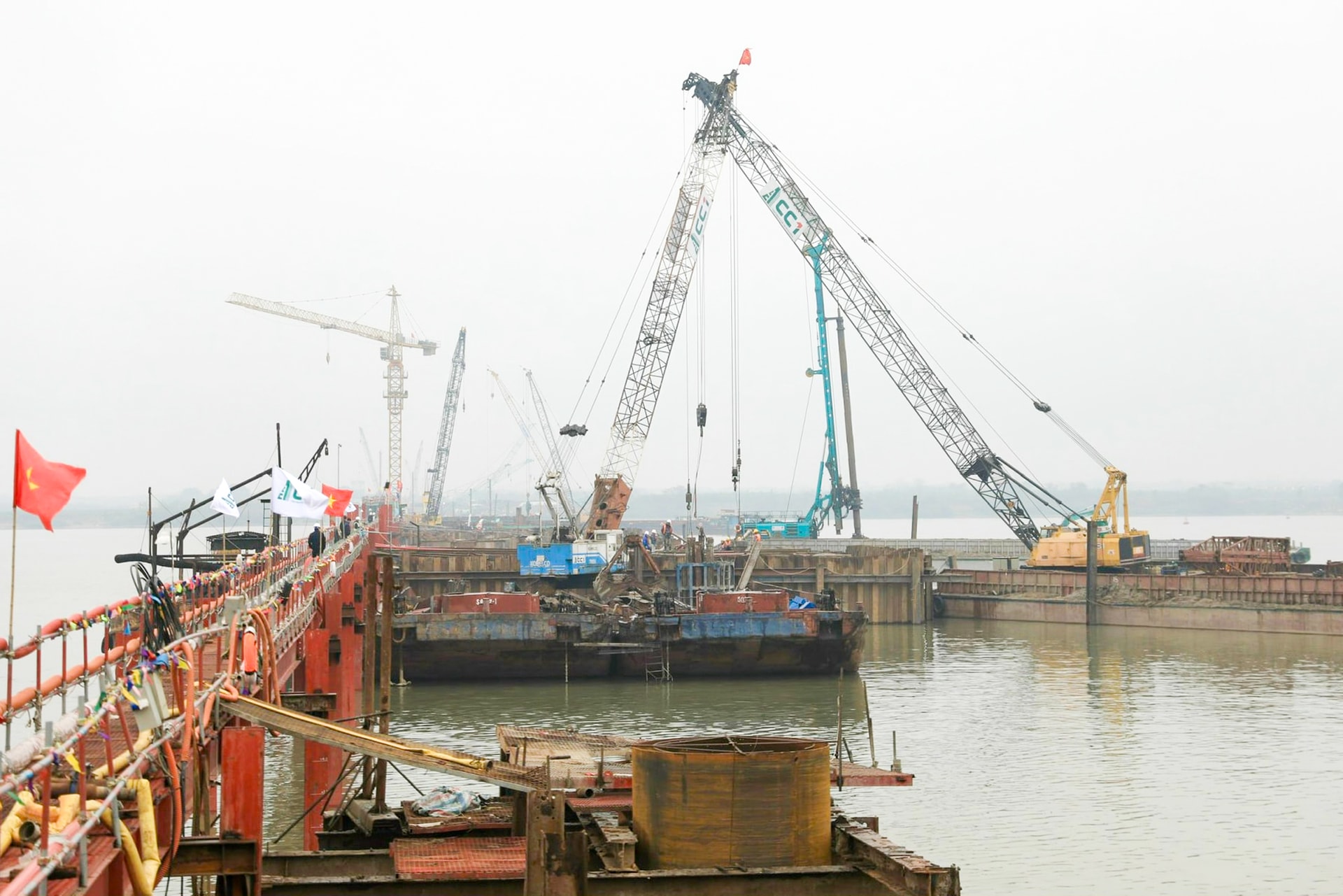 Trên công trường xây dựng cầu Hồng Hà. Ảnh: Quang Thái