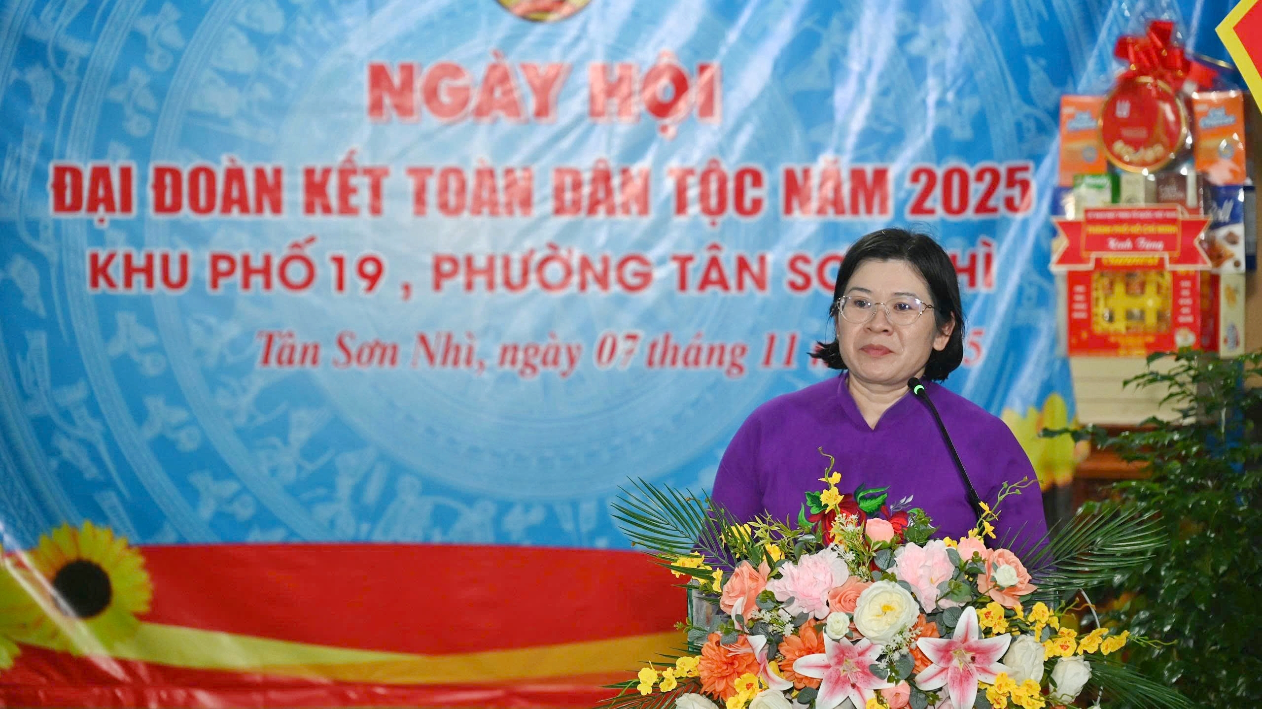 Phát biểu tại ngày hội, Phó Bí thư Thành ủy TPHCM Văn Thị Bạch Tuyết biểu dương những nỗ lực, thành tích đạt được của khu phố 19.