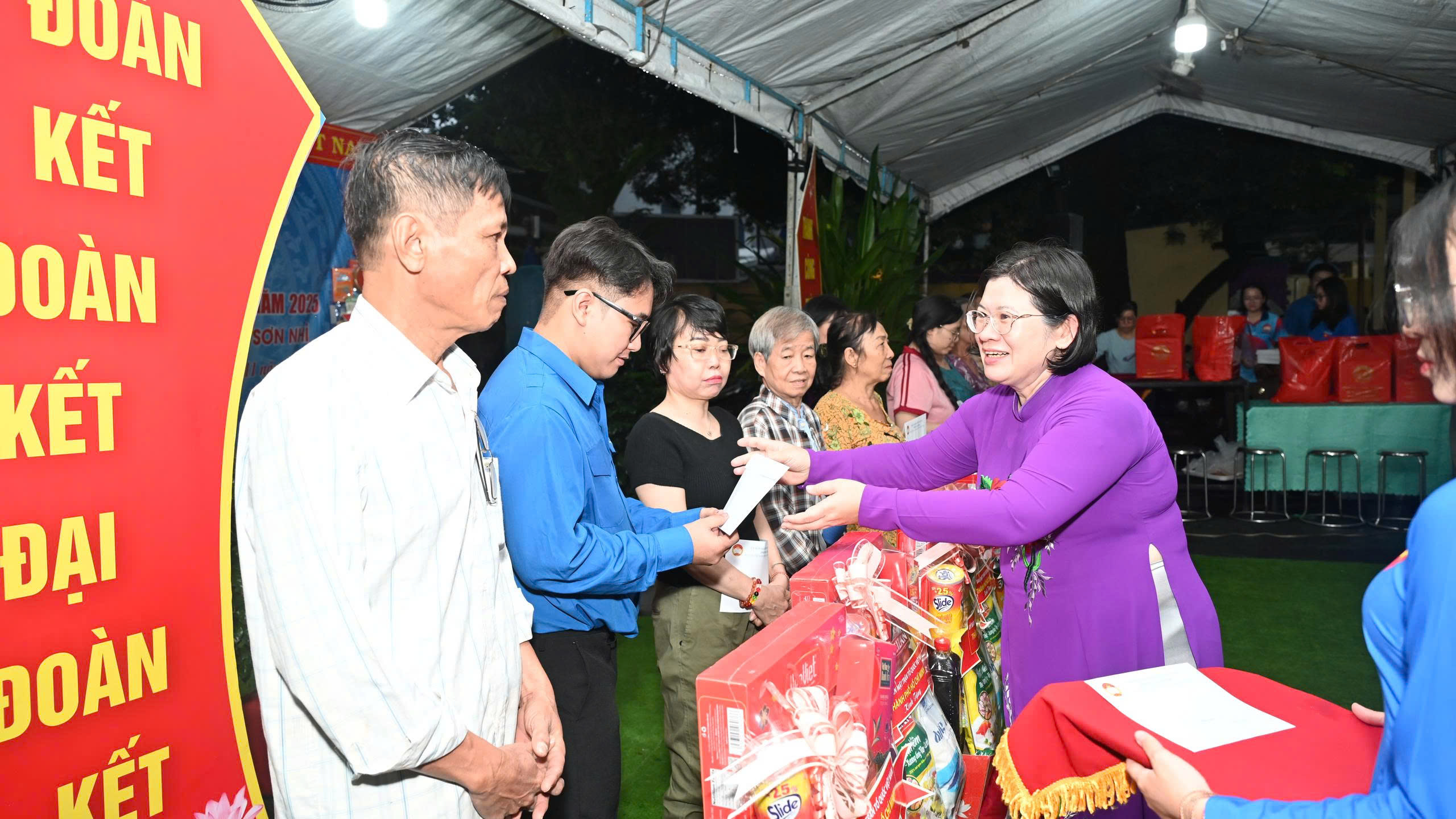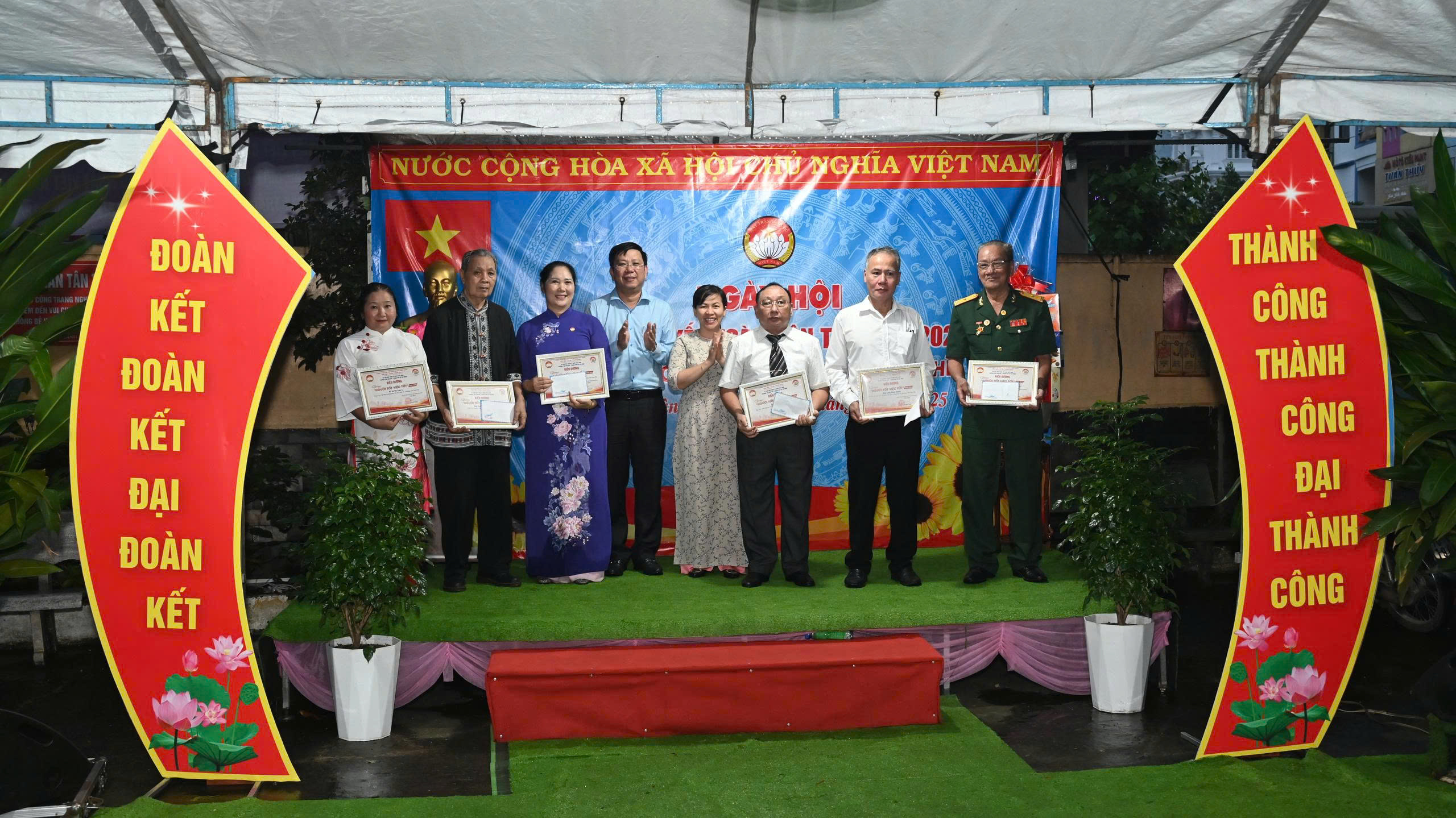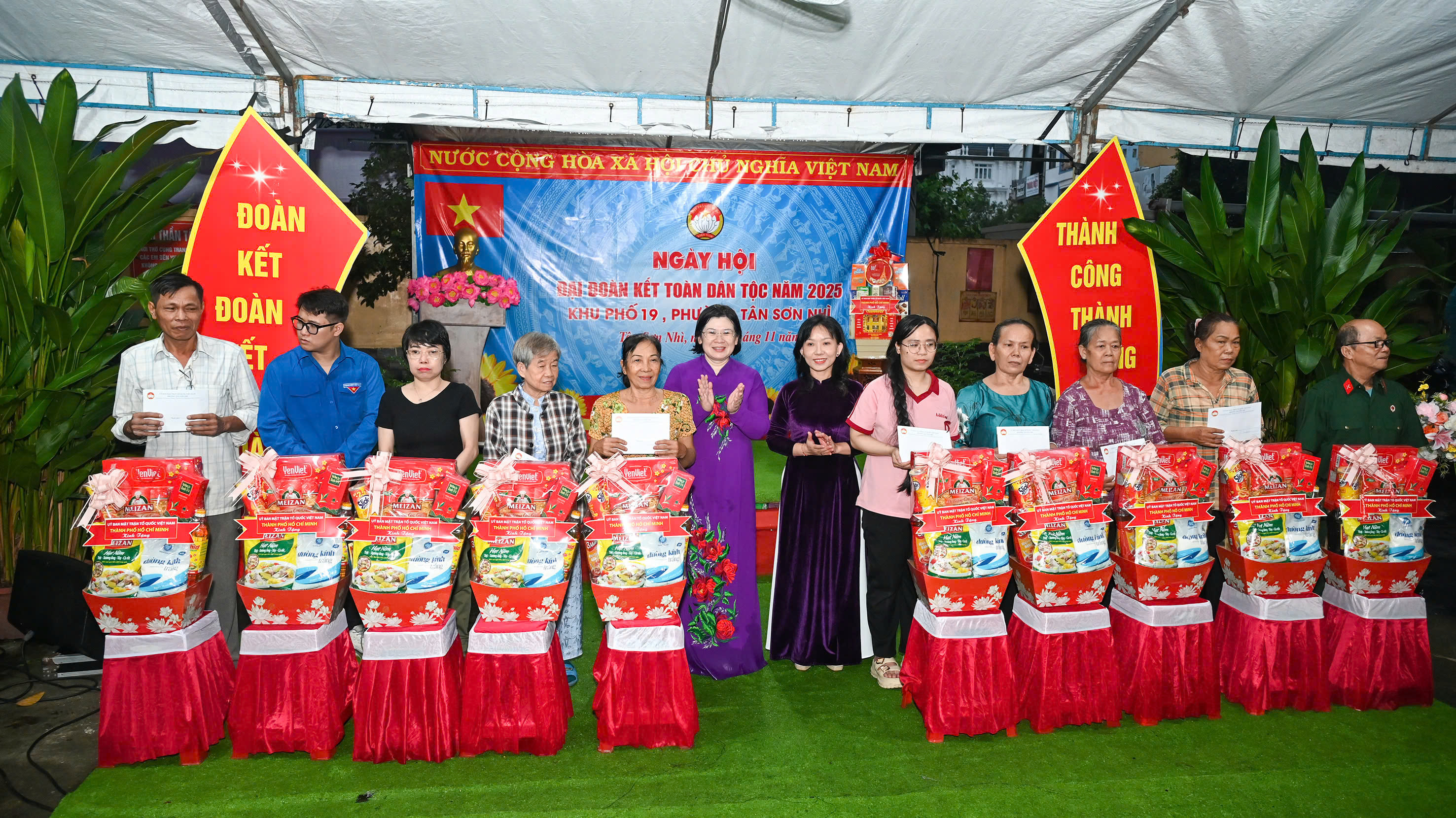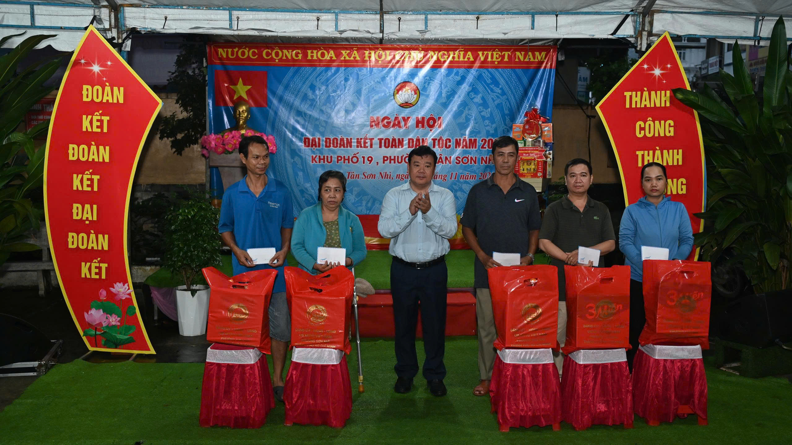 Tại ngày hội, đồng chí Văn Thị Bạch Tuyết trao quà của Thành ủy – HĐND – UBND - Ủy ban MTTQ Việt Nam TPHCM đến 10 hộ dân có hoàn cảnh khó khăn trong khu phố. Lãnh đạo phường cũng trao 5 phần quà đến hộ dân khó khăn.