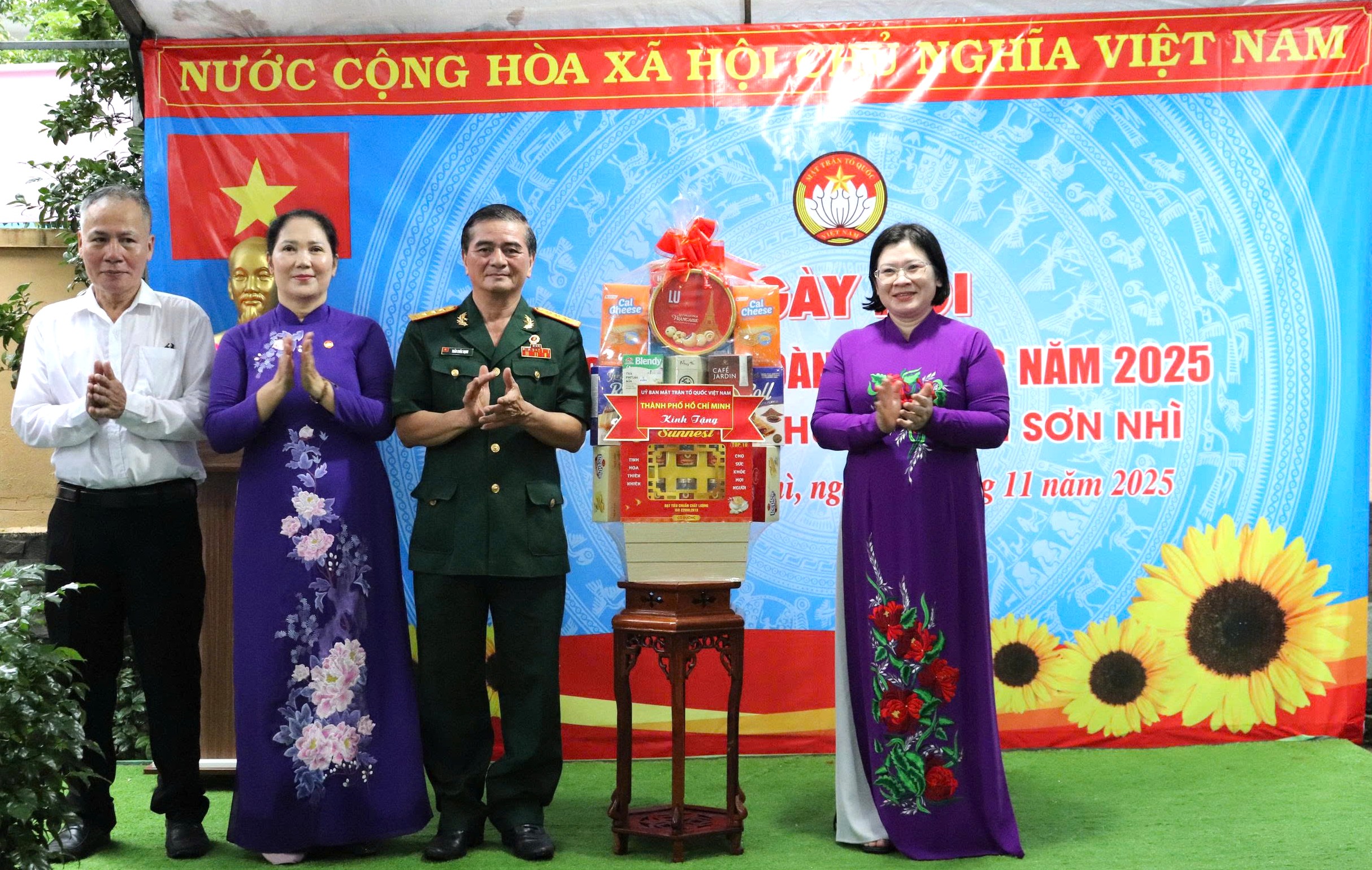 Đồng chí Văn Thị Bạch Tuyết trao quà của Thành ủy - HĐND - UBND - Ủy ban MTTQ Việt Nam TPHCM chúc mừng ngày hội. Ảnh: CẨM TUYẾT
