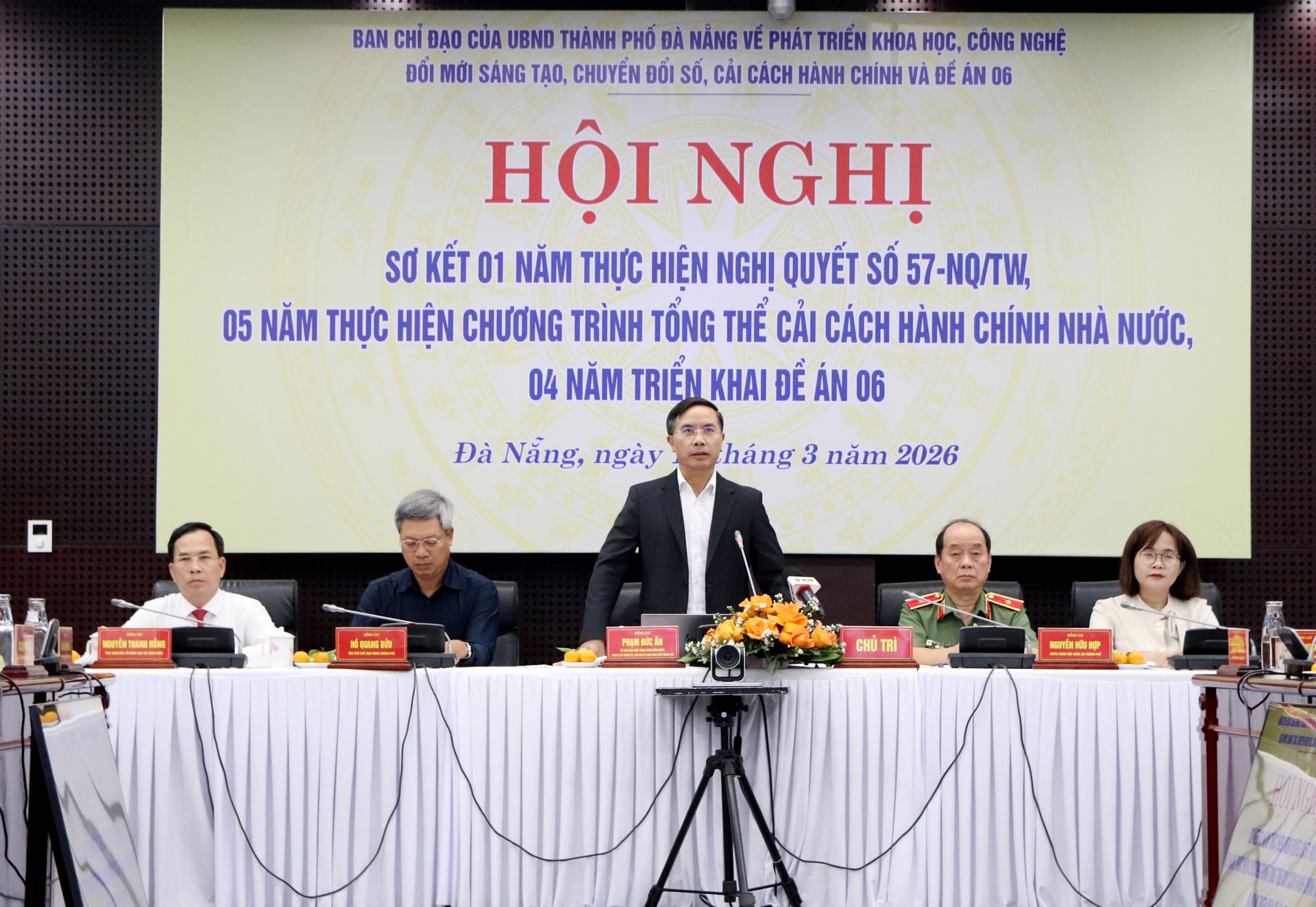 Đồng chủ trì có Phó Chủ tịch UBND thành phố Hồ Quang Bửu, Phó Trưởng ban thường trực Ban Chỉ đạo 57 của UBND thành phố; Thiếu tướng Nguyễn Hữu Hợp, Giám đốc Công an thành phố; Giám đốc Sở Khoa học và Công nghệ Nguyễn Thanh Hồng và Giám đốc Sở Nội vụ Trần Thị Kim Hoa.